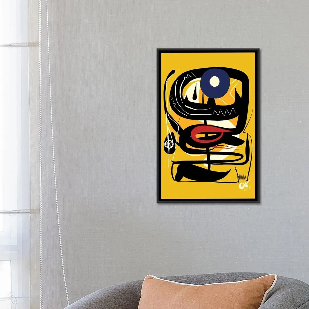 Icanvas "Yellow African Blue Eye" By Emmanuel Signorino Framed Canvas Print - White - 48x32