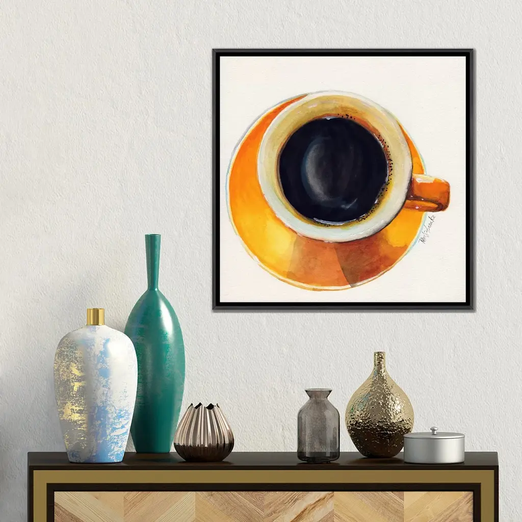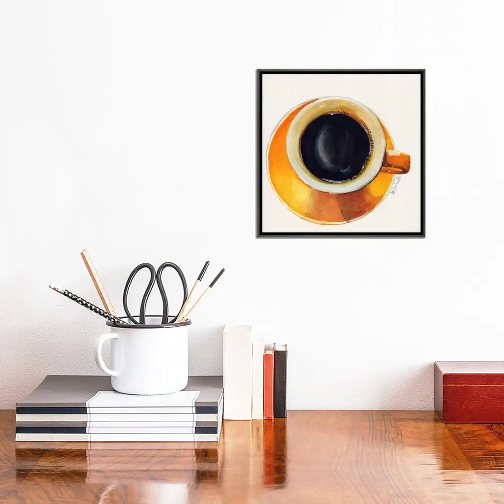 Icanvas "Yellow Coffee Cup" By Jennifer Redstreake Framed - 26x26 - Charcoal