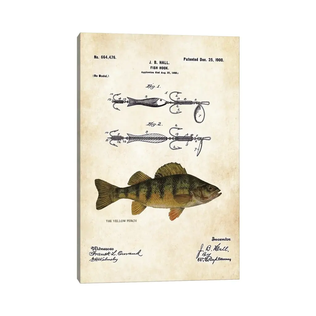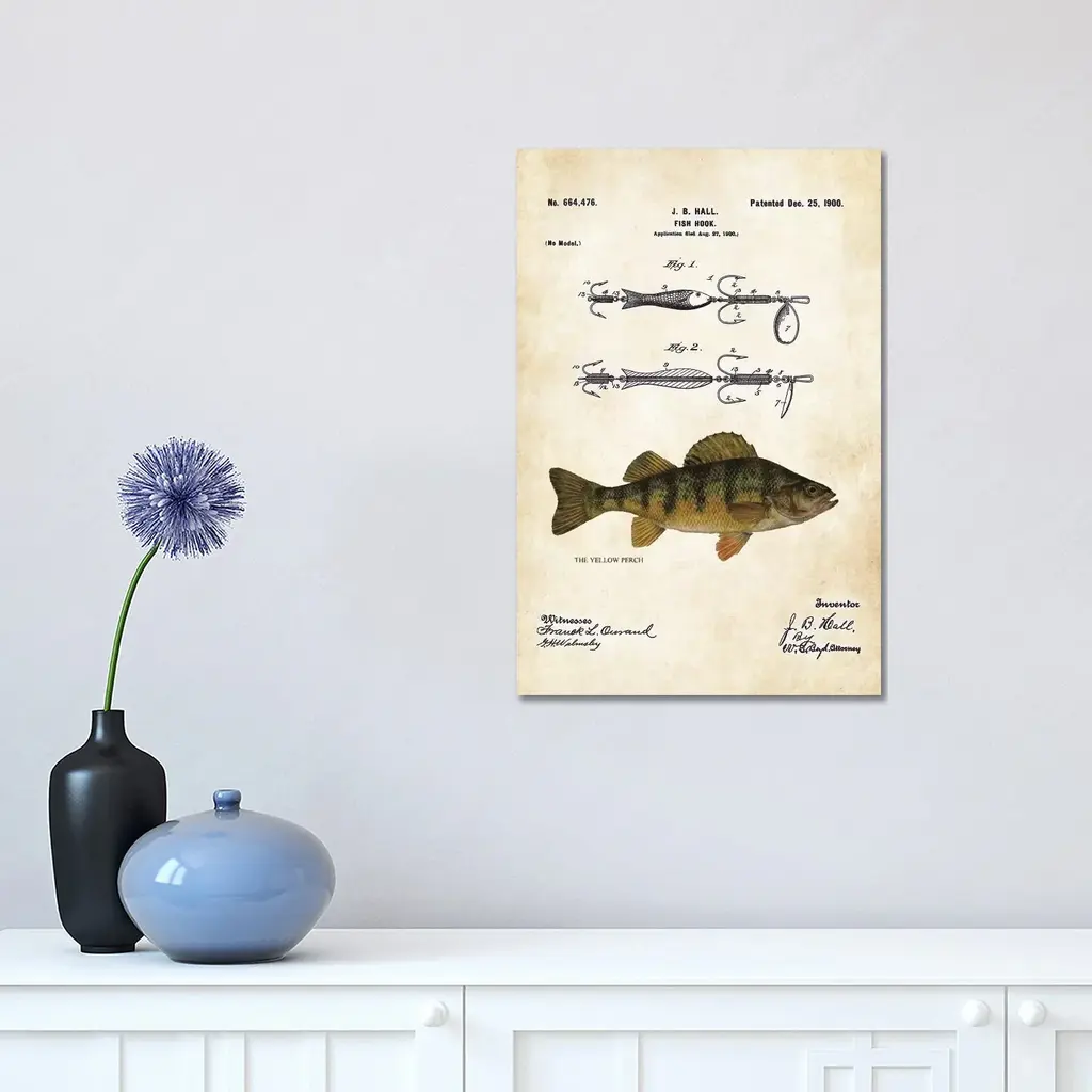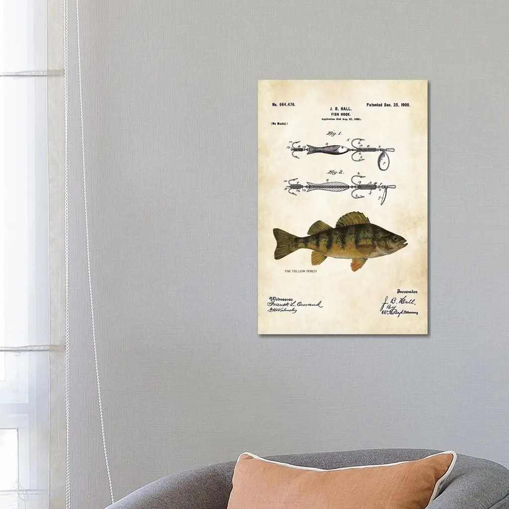 Icanvas "Yellow Perch Fishing Lure" By Patent77 Canvas Print - 26x18x1.5