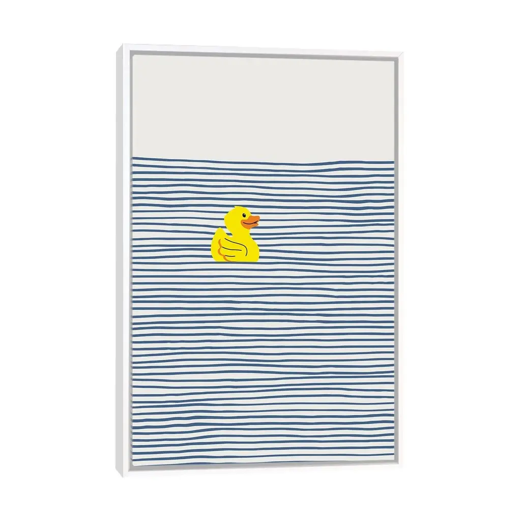 Icanvas "Yellow Rubber Duck" By Little Dean Framed Canvas Print - White - 40x26