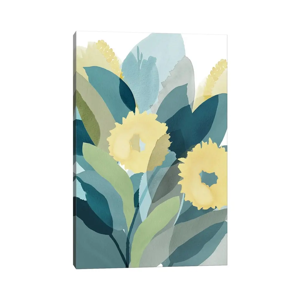 Icanvas "Yellow Teal Floral Iii" By Flora Kouta Canvas Print - 12x8x0.75