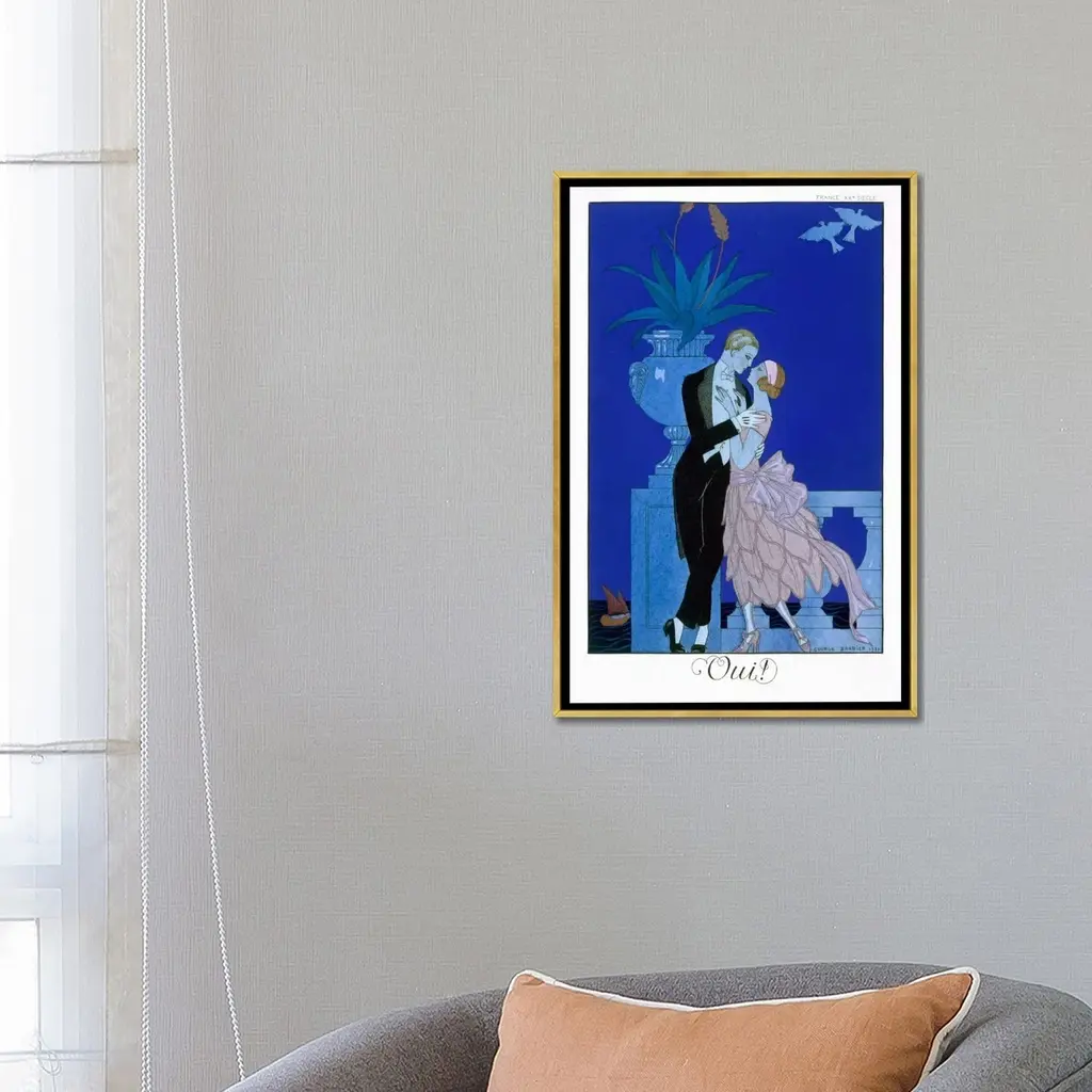 Icanvas "Yes 1921 (Colour Litho)" By George Barbier Framed Canvas Print - Black - 48x32