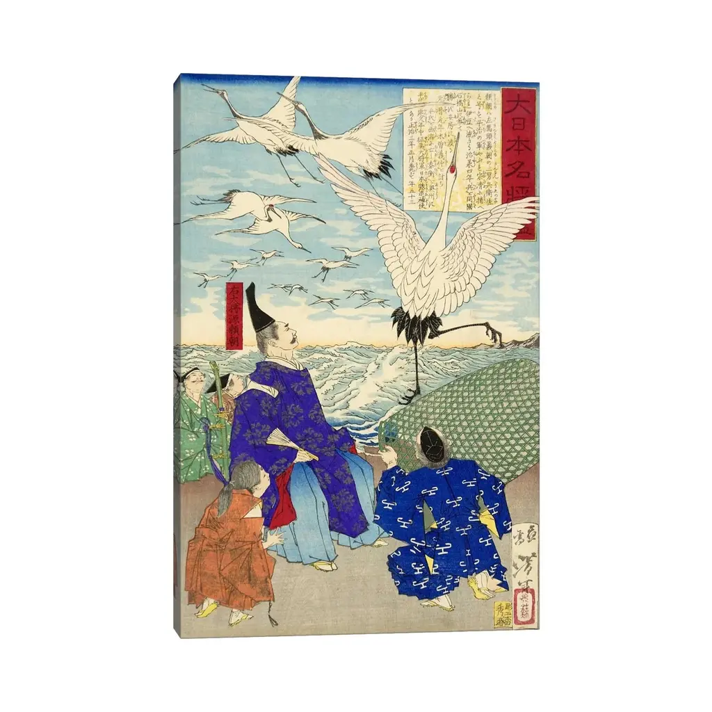Icanvas "Yoritomo Releasing Cranes On The Seashore" By Yoshitoshi Canvas Print - 12x8x0.75