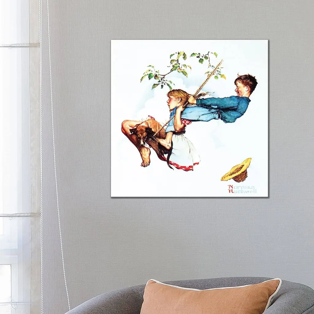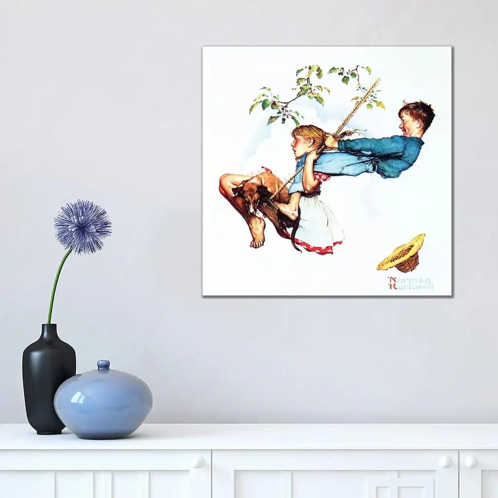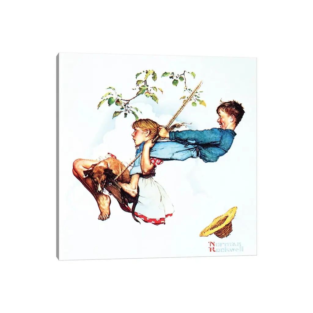 Icanvas "Young Love - Swinging" By Norman Rockwell Canvas Print - 12x12x1.5