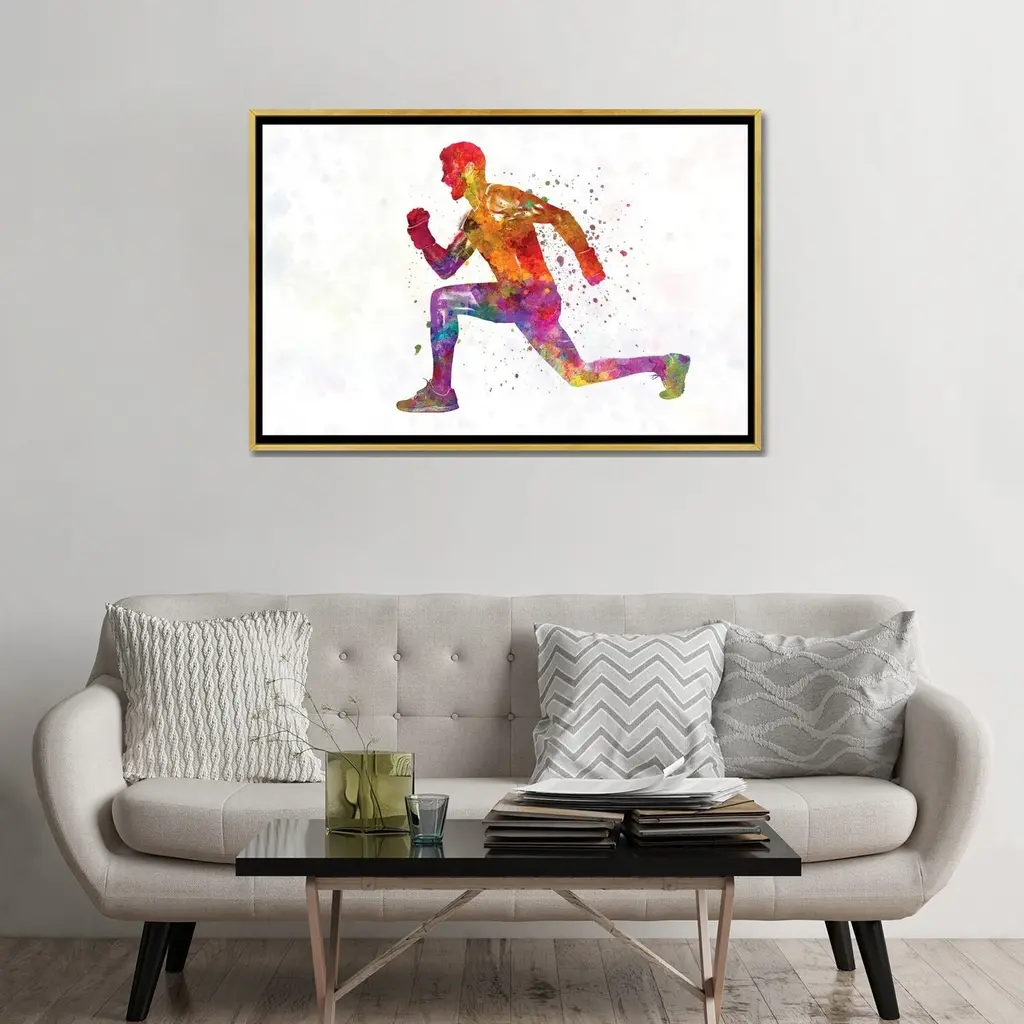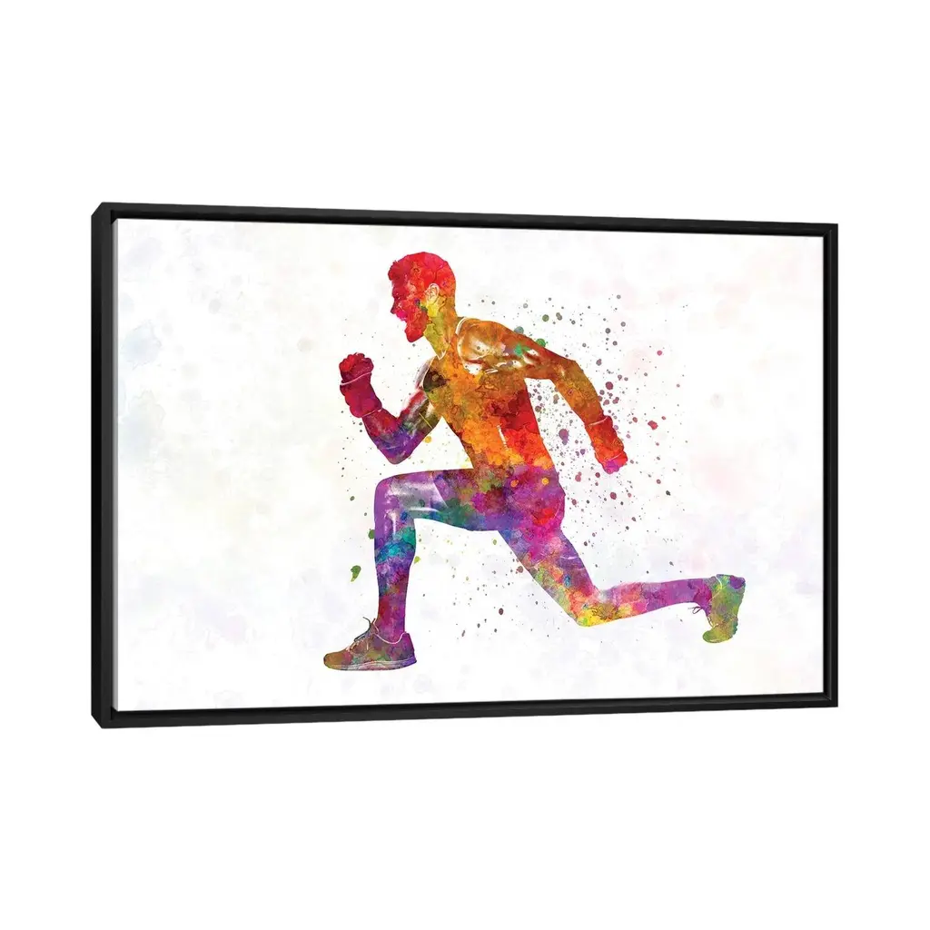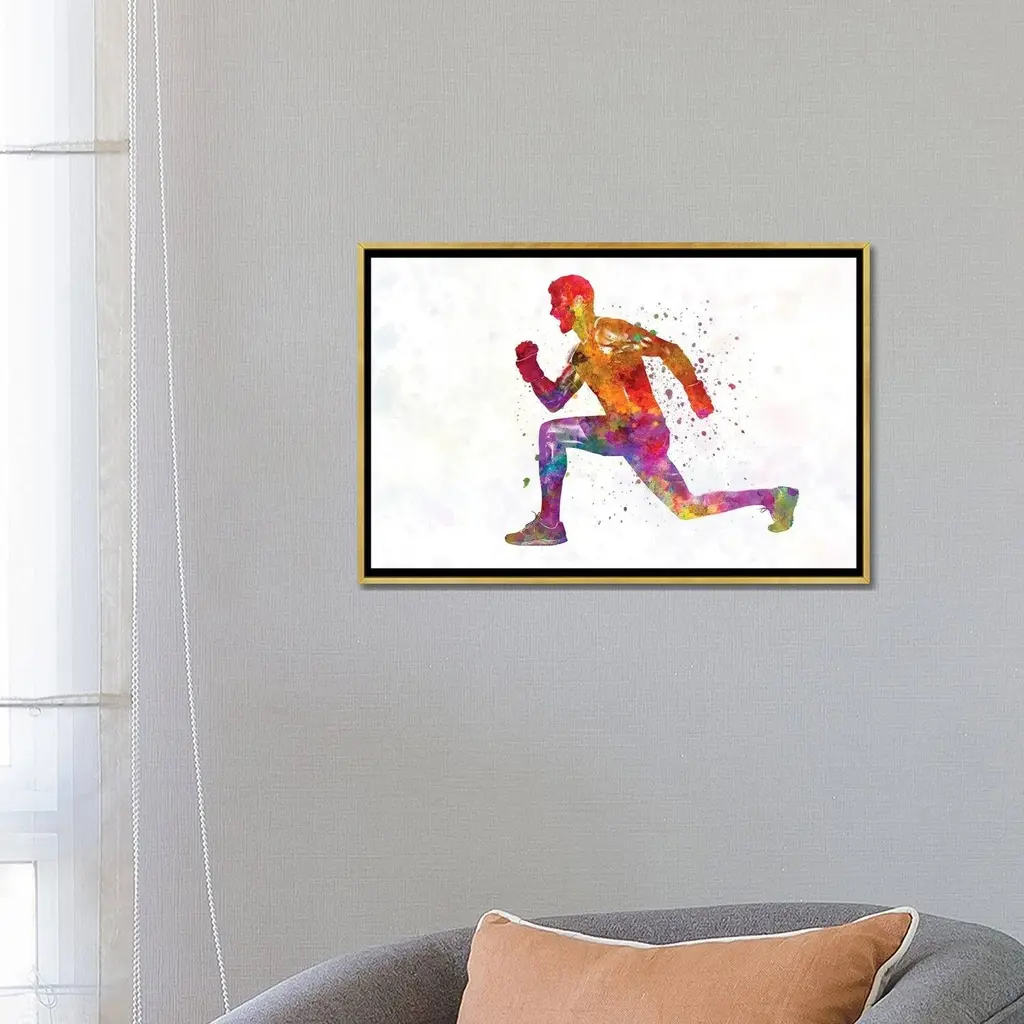 Icanvas "Young Man Practices Fitness Exercise In Watercolor" By Paul Rommer Framed Canvas Print - Black - 26x40
