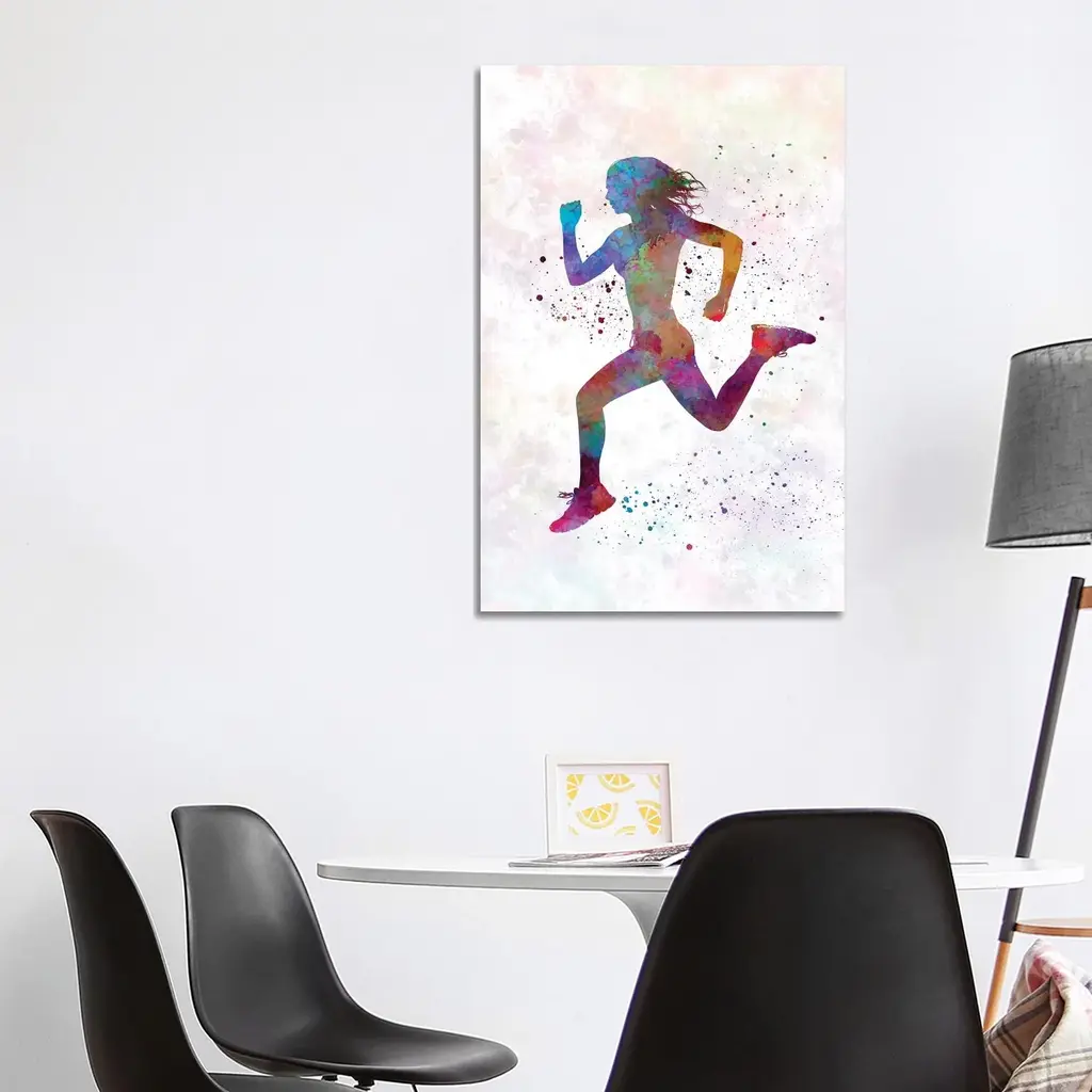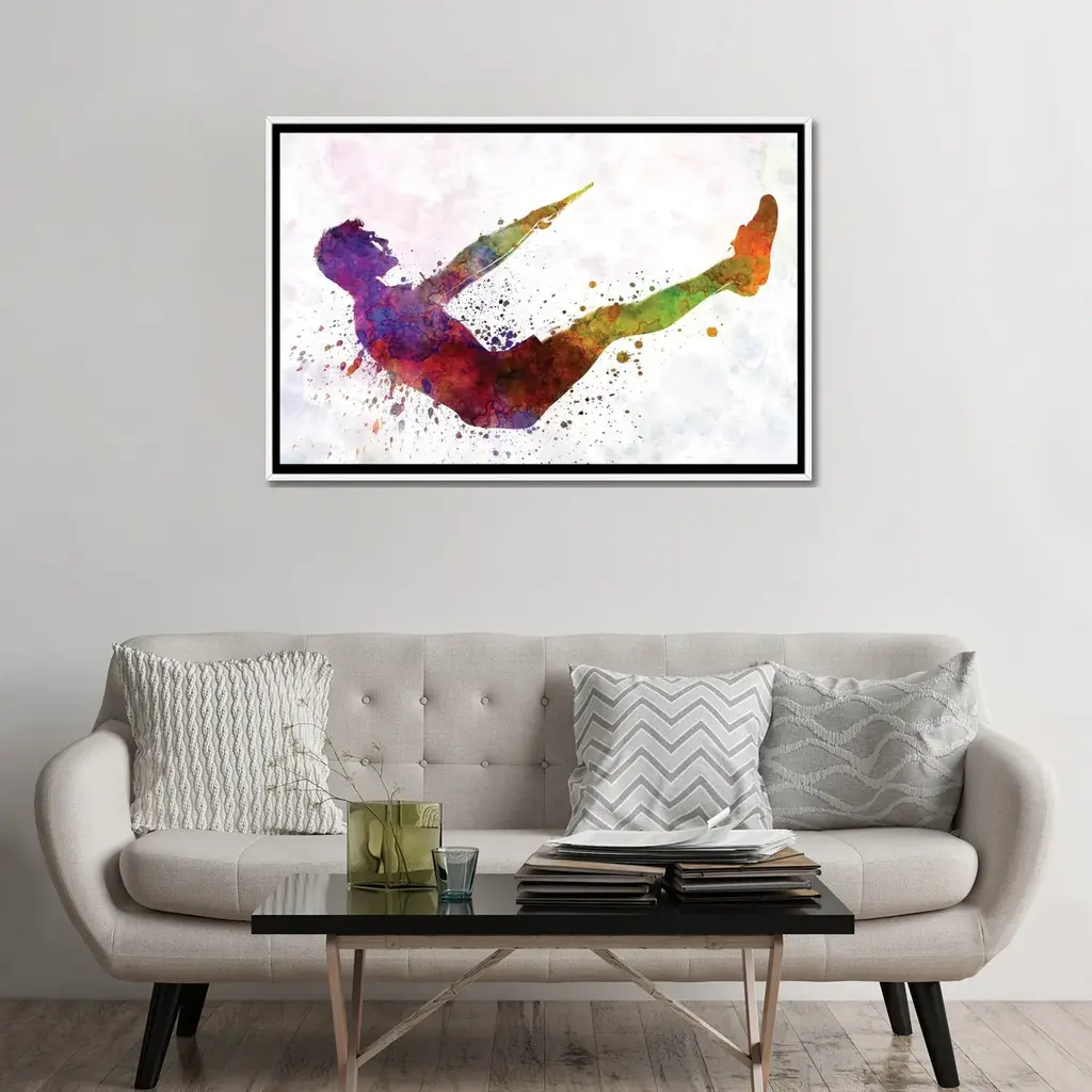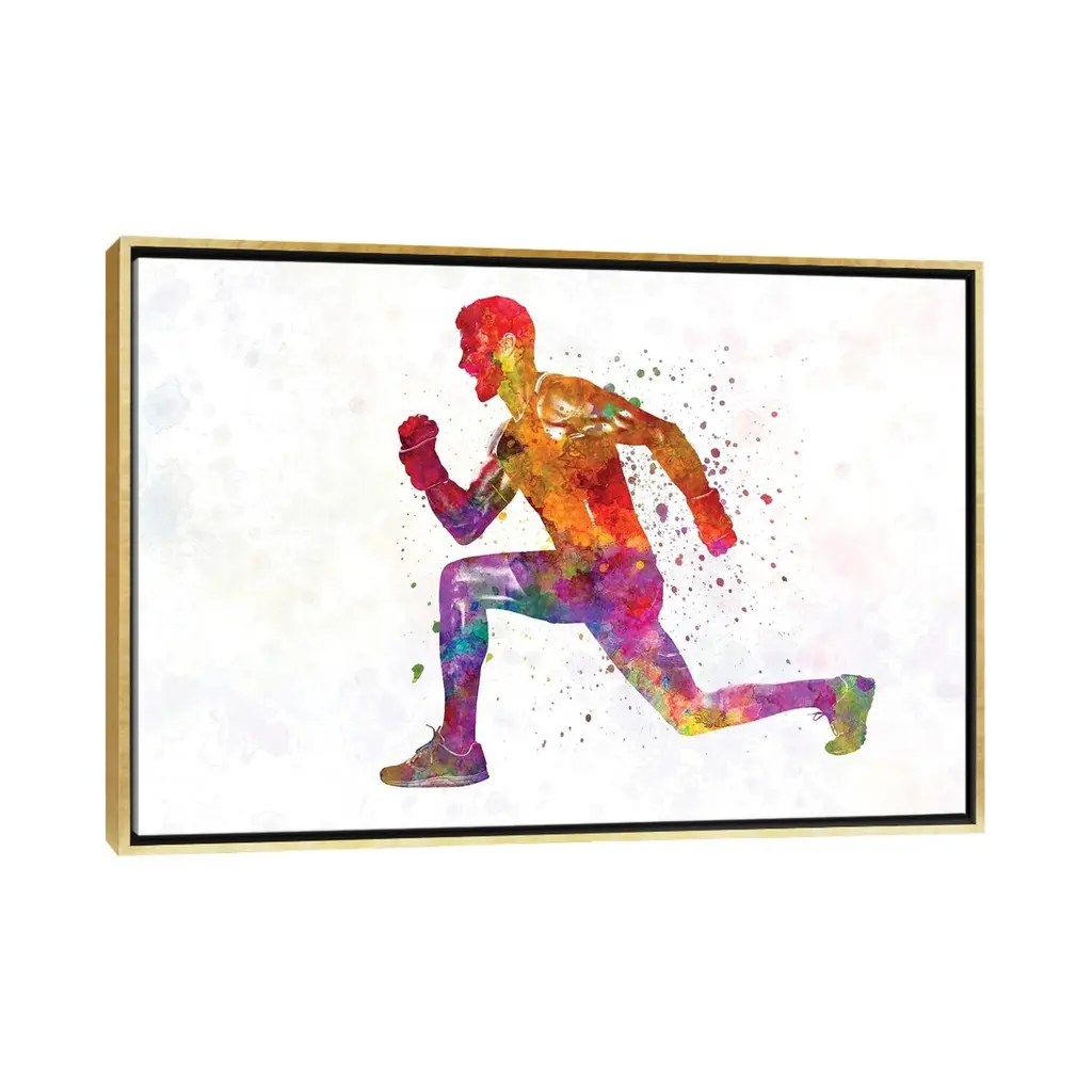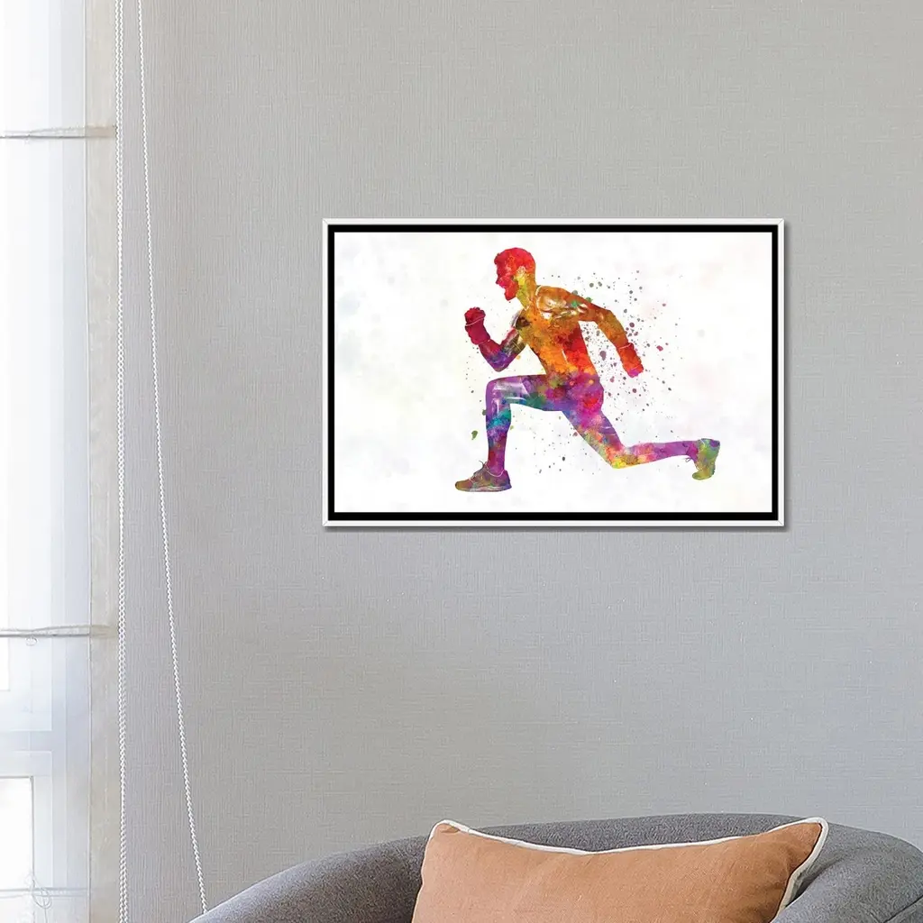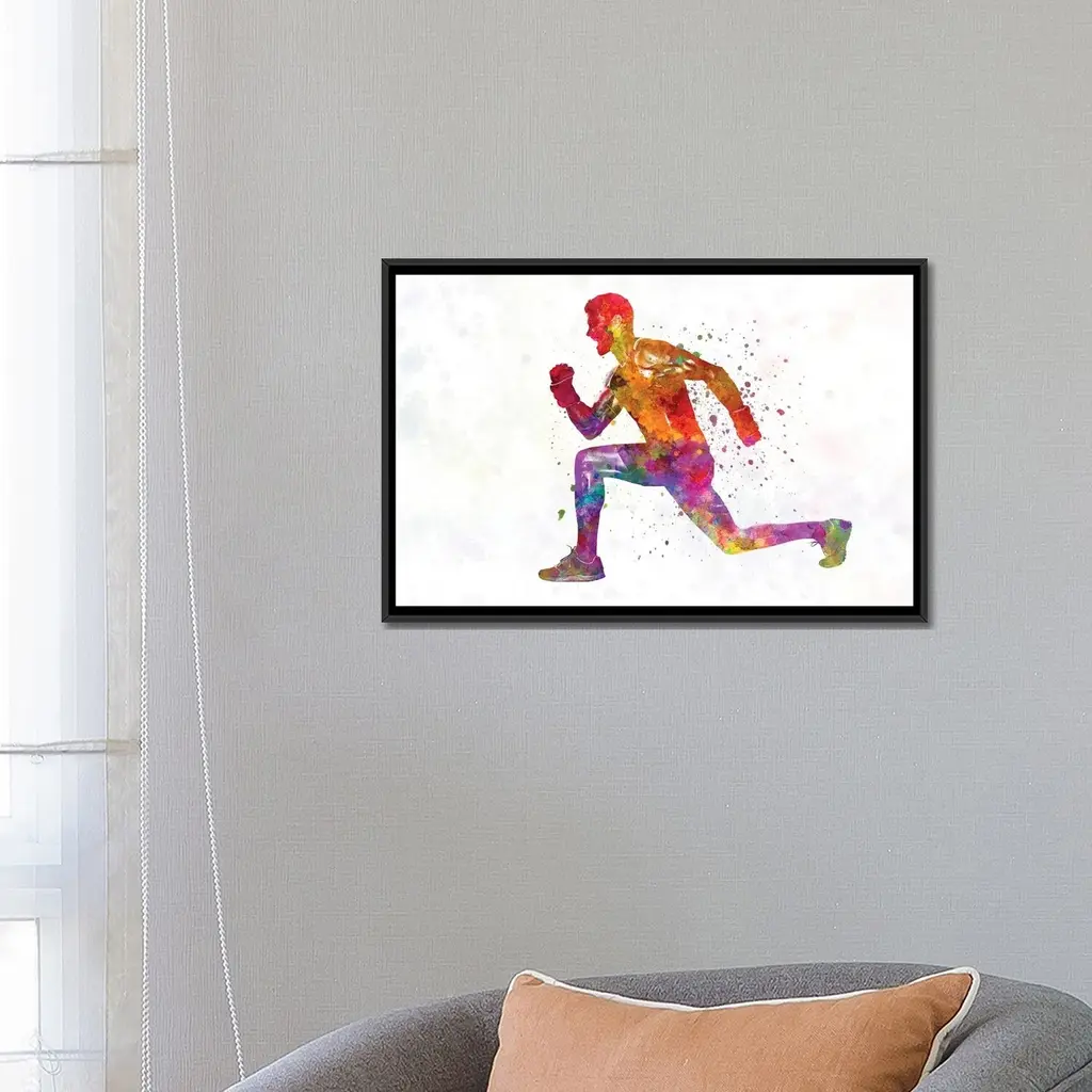 Icanvas "Young Man Practices Fitness Exercise In Watercolor" By Paul Rommer Framed Canvas Print - Black - 32x48
