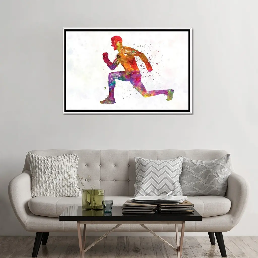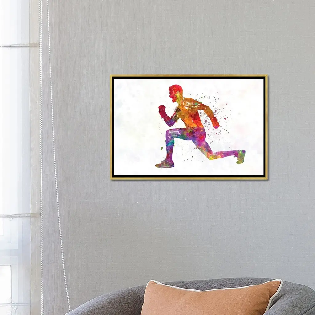 Icanvas "Young Man Practices Fitness Exercise In Watercolor" By Paul Rommer Framed Canvas Print - Gold - 18x26