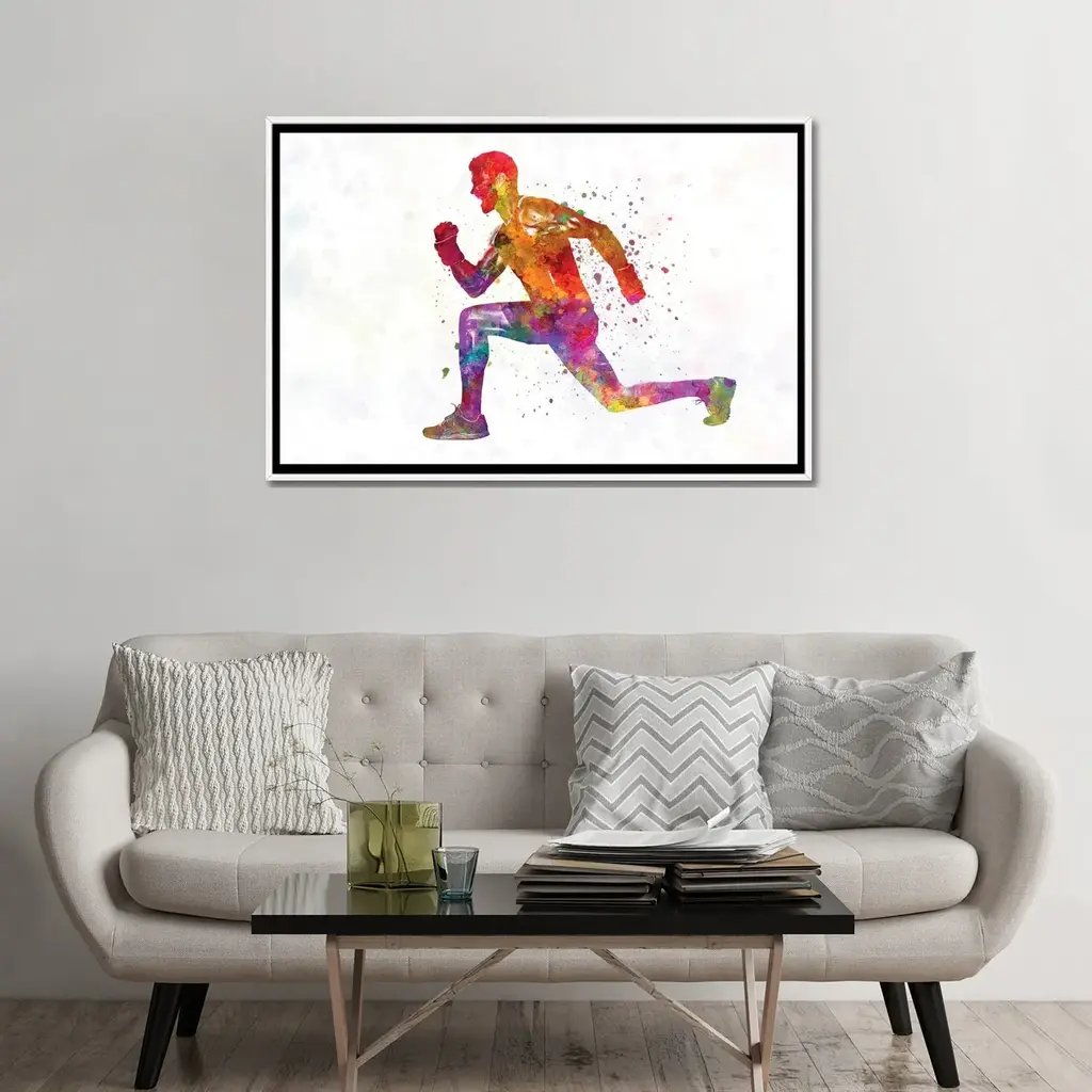 Icanvas "Young Man Practices Fitness Exercise In Watercolor" By Paul Rommer Framed Canvas Print - White - 32x48