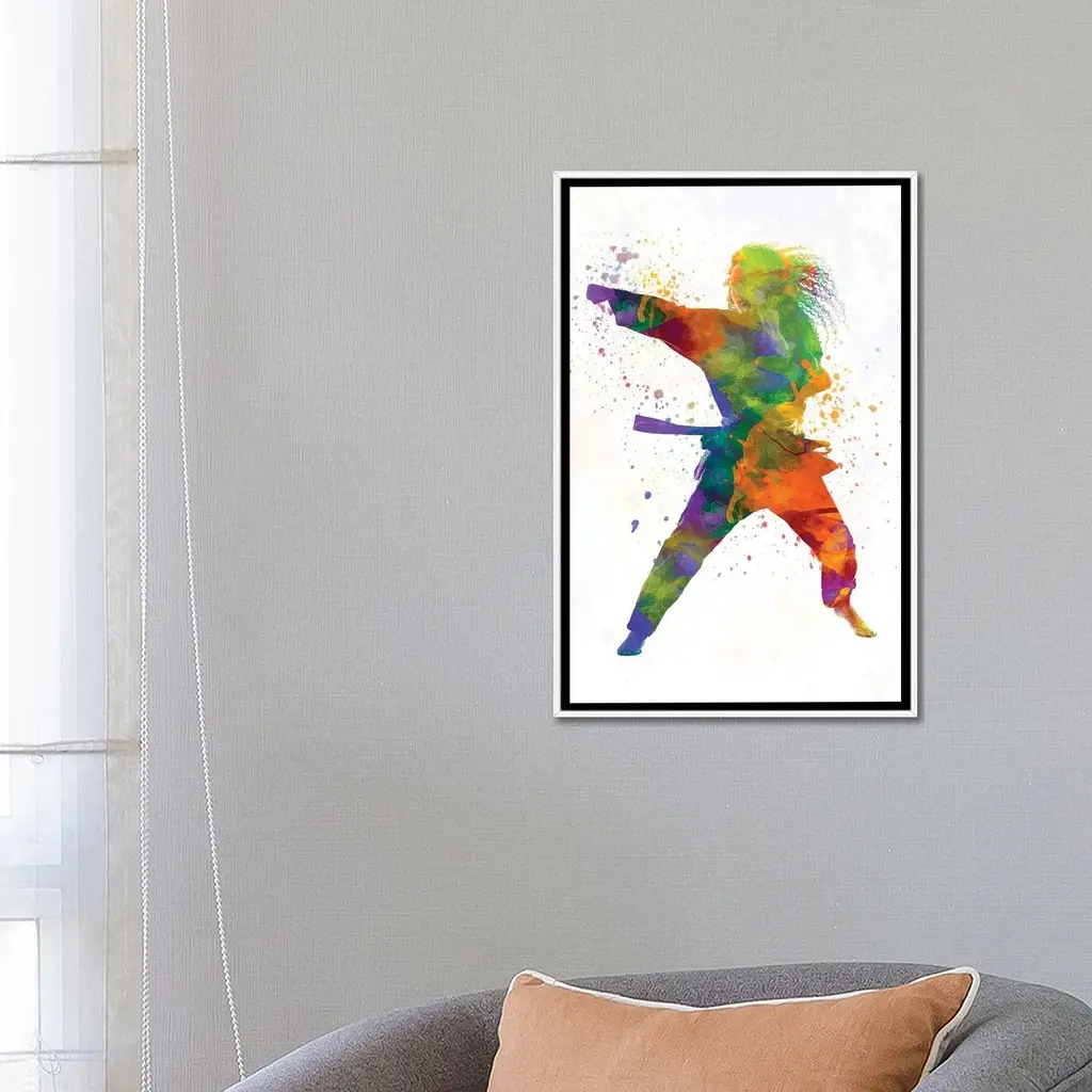 Icanvas "Young Man Practices Karate In Watercolor" By Paul Rommer Framed Canvas Print - Gold - 40x26
