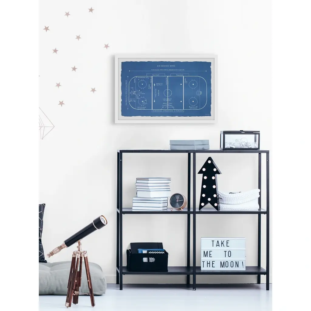 'Ice Hockey Rink Blueprint' Framed Painting Print - 36 X 24