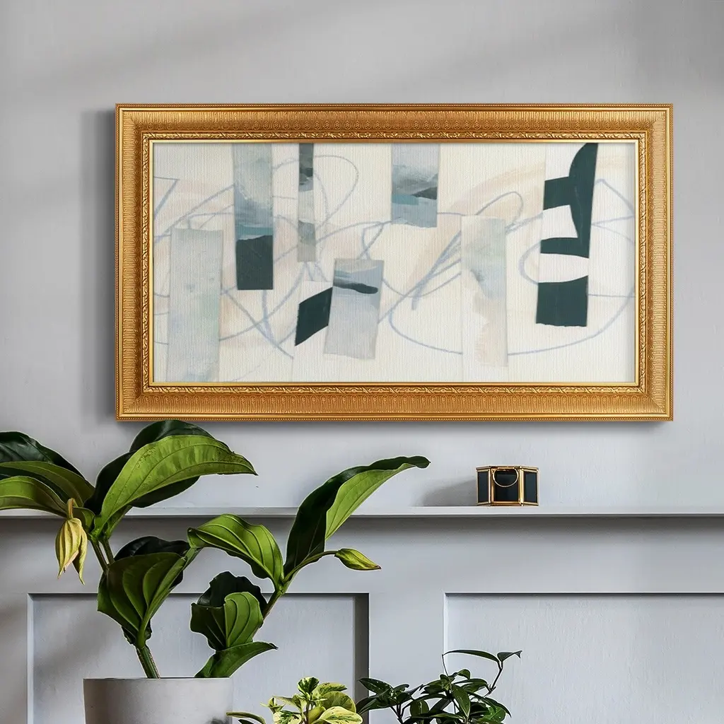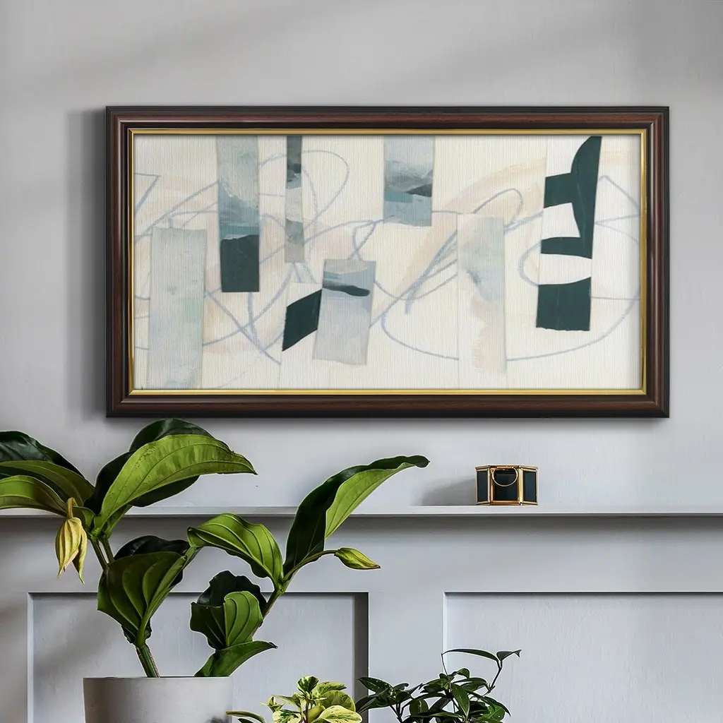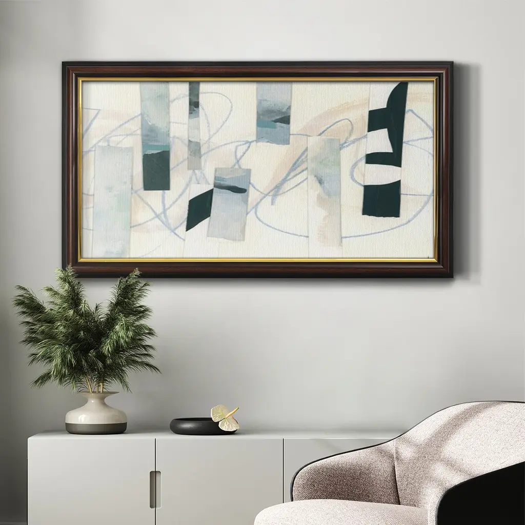 Ice Twine II Premium Framed Canvas- Ready to Hang A Premium Framed Canvas created to last. Framed in distressed wood and available in an array of sizes and colors Featuring a beveled a solid wood stretcher bar, each piece comes ready to hand 3 SIZES AVAILABLE 21''X37'' - Overall Size 25''X45'' - Overall Size 29''x53'' - Overall Size Each piece is made to order. Each piece comes with hanging hardware. Made in the USA Ready to Hang Giclee Paper Print Acrylic Glass Beveled Matt Board
