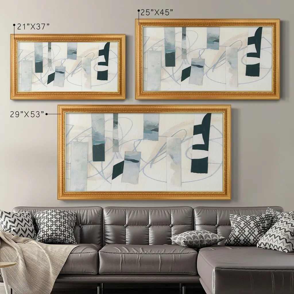 Ice Twine II Premium Framed Canvas- Ready to Hang A Premium Framed Canvas created to last. Framed in distressed wood and available in an array of sizes and colors Featuring a beveled a solid wood stretcher bar, each piece comes ready to hand 3 SIZES AVAILABLE 21''X37'' - Overall Size 25''X45'' - Overall Size 29''x53'' - Overall Size Each piece is made to order. Each piece comes with hanging hardware. Made in the USA Ready to Hang Giclee Paper Print Acrylic Glass Beveled Matt Board