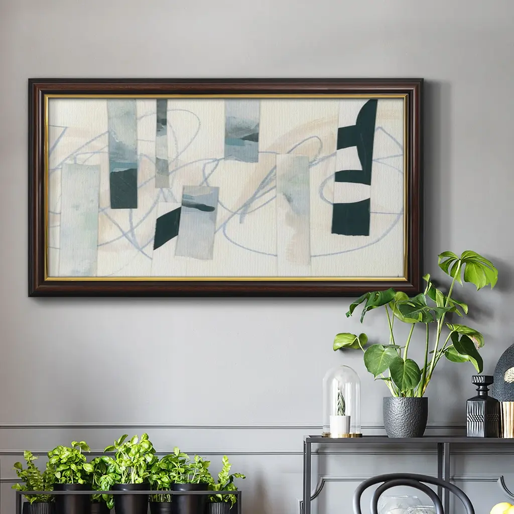 Ice Twine II Premium Framed Canvas- Ready to Hang A Premium Framed Canvas created to last. Framed in distressed wood and available in an array of sizes and colors Featuring a beveled a solid wood stretcher bar, each piece comes ready to hand 3 SIZES AVAILABLE 21''X37'' - Overall Size 25''X45'' - Overall Size 29''x53'' - Overall Size Each piece is made to order. Each piece comes with hanging hardware. Made in the USA Ready to Hang Giclee Paper Print Acrylic Glass Beveled Matt Board