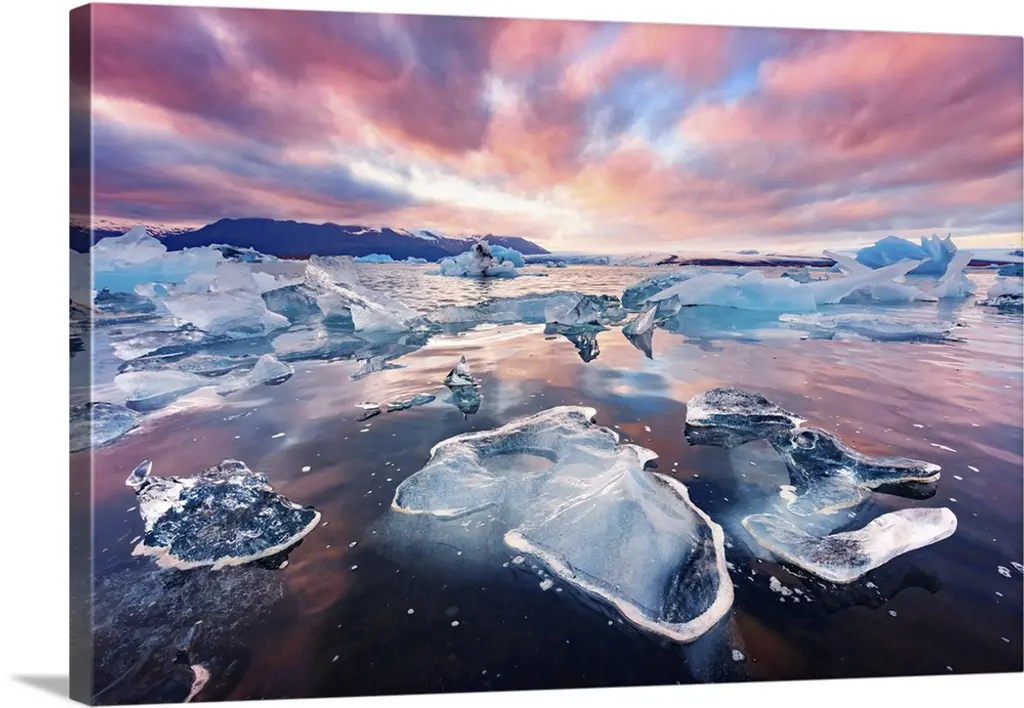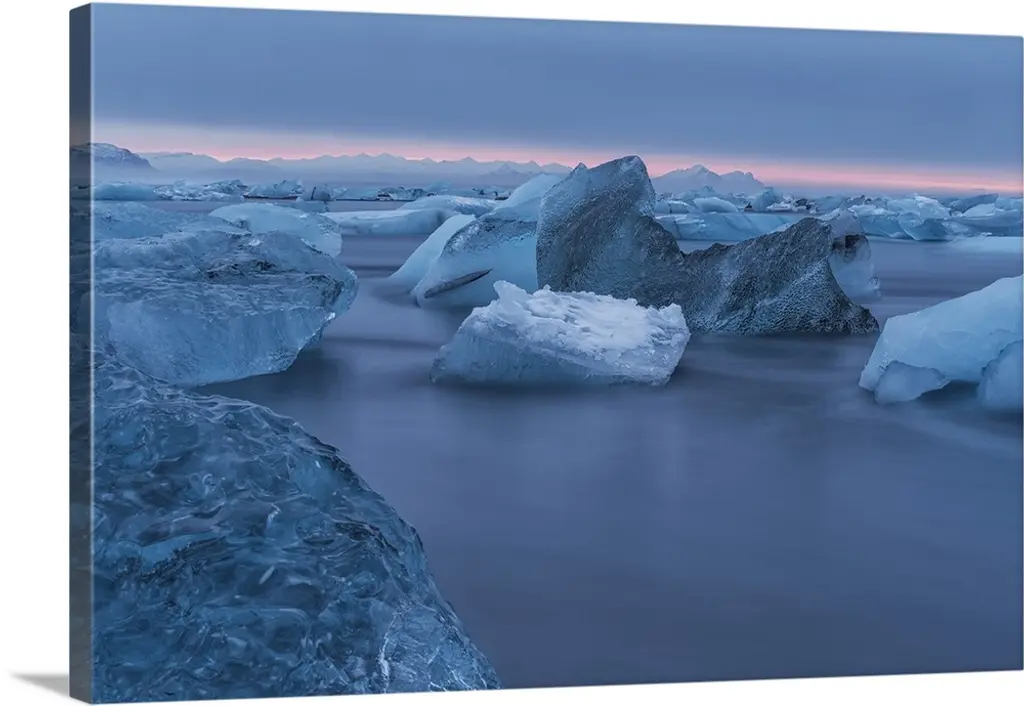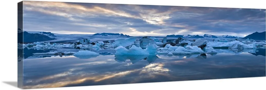 Bring contemporary abstraction to your home with this large 36W x 28H Metal Wall Art. This Icebergs in Glacier Lagoon Metal Artwork makes it the focal point of any room or office. - White gloss coating ensures colors are extra vibrant with light reflection.- Aluminum grade sheet metal with 1-inch mounting frame on the back giving the illusion that the artwork is floating on the wall.- Mounting brackets are included along with instructions.- High quality digital images are created directly into a glossy aluminum panel producing a stunning and captivating print into the glossy finish of the metal.- Water, fire and scratch resistant HD aluminum panels.- Looks better than any photo paper and guaranteed to last at least 20 years- Easy to clean with a microfiber cloth. Colors are far superior to regular canvas art. - Easy to hang