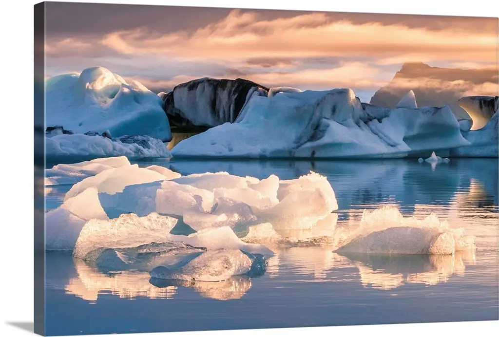 "Icebergs In Glacier Lagoon" Metal Wall Art, 3 Panels, 36"x28"