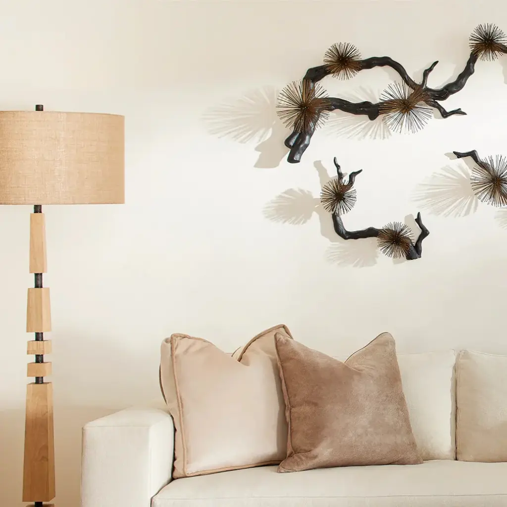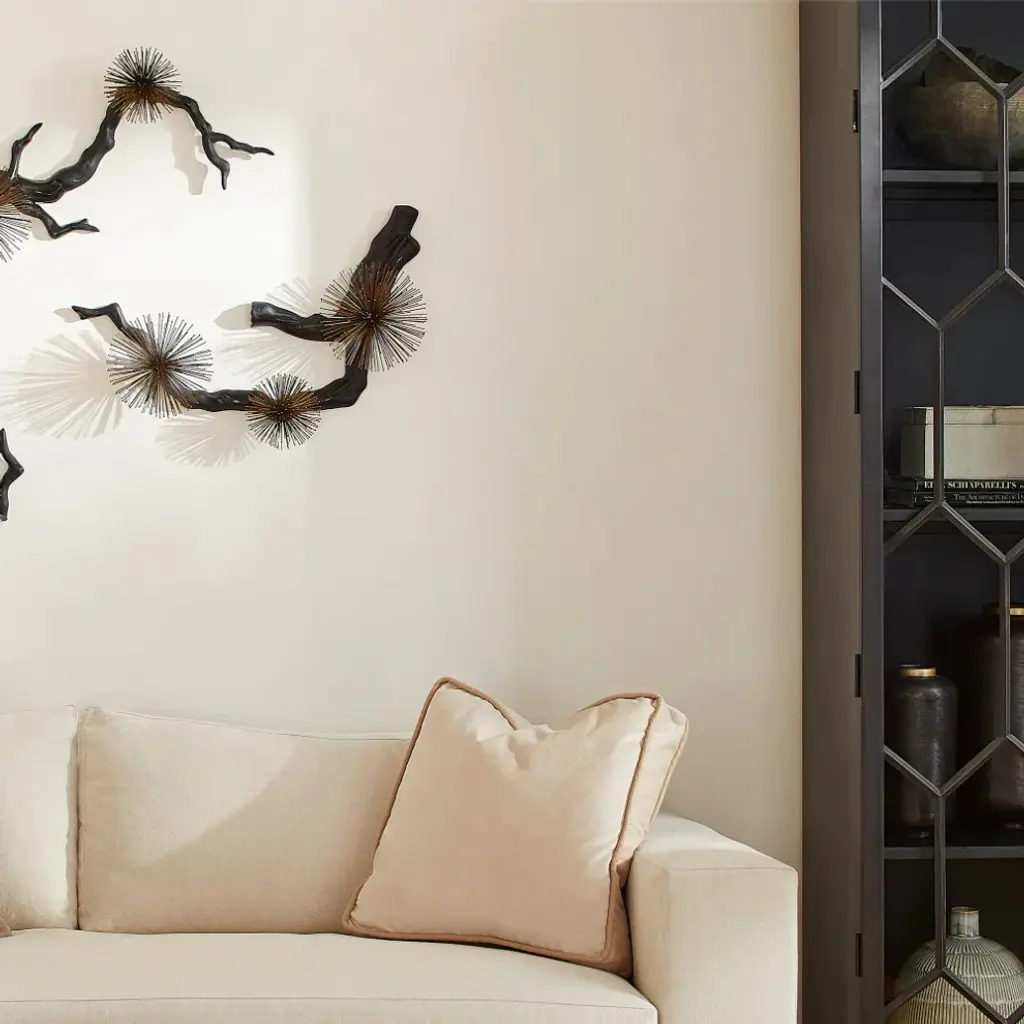 Signifying a time of renewal, the blossoming of Ichiyo cherry tree is a celebrated occasion that draws millions of people to witness its restorative energy. The influential strength of the cherry blossom can be seen in the Ichiyo wall decor''s matte black branch-like arms that bear matte brass explosion blooms. Display the Ichiyo collection horizontally or vertically for a refreshing boost to any living space.