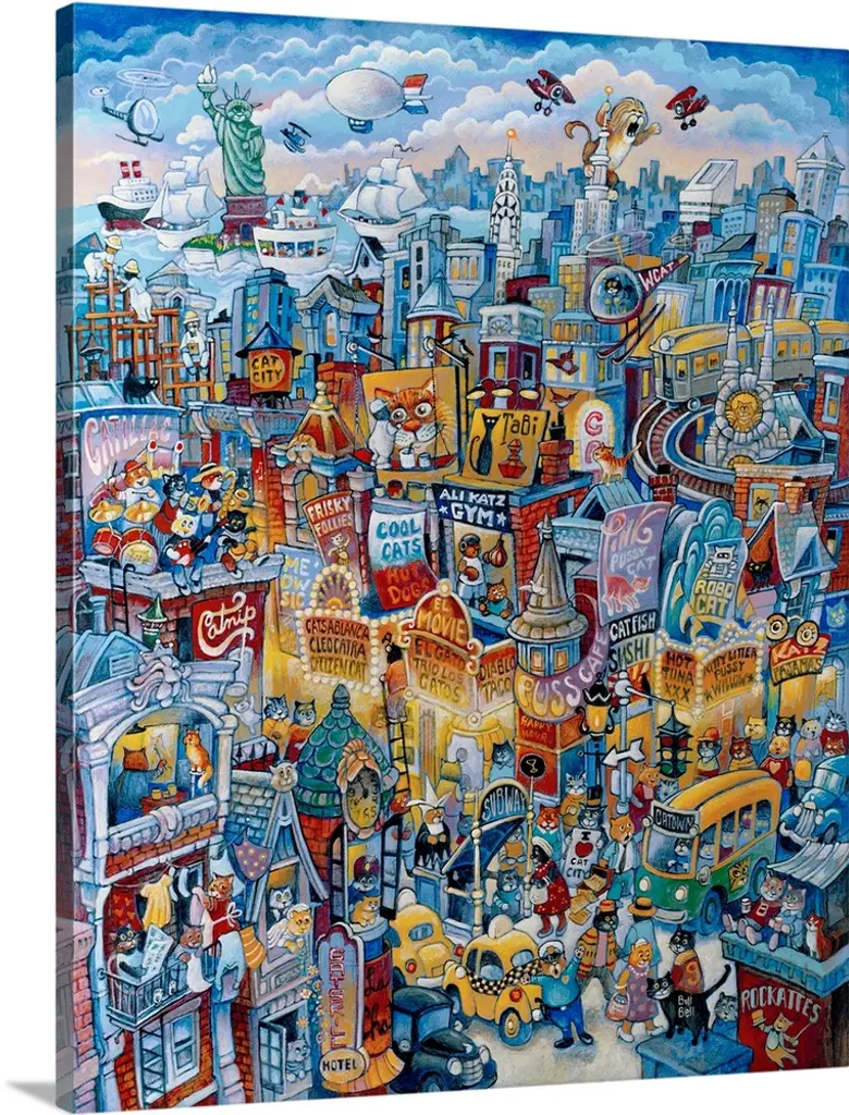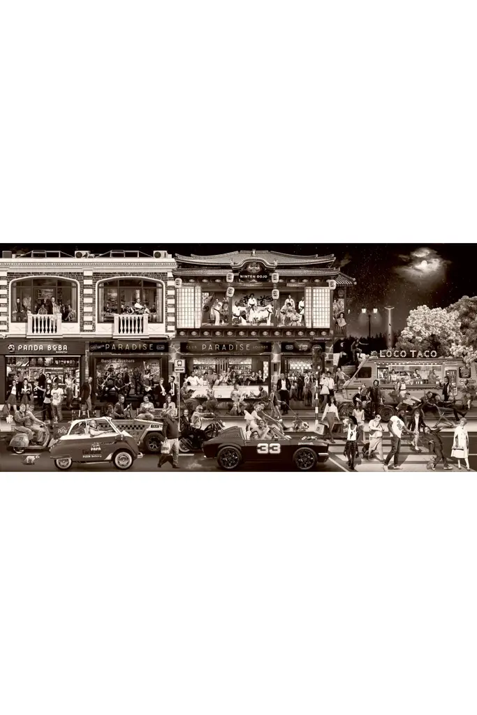 All your favorite iconic figures come together in this playful, colorful photographic artwork, depicting a bustling roadside scene. The more you look, the more you'll spot, making for a fun piece that is sure to incite conversation. Printed onto smooth plexiglass this artwork has a sleek, glossy finish and is part of our curated collaboration with Cobra Art.