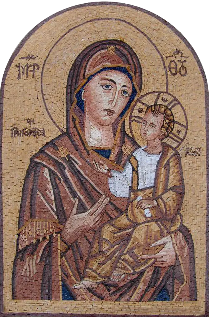 Experience the beauty and reverence of the "Iconic Mosaic of Jesus And Mary," a breathtaking piece of art that embodies faith and craftsmanship. This exquisite hand-made marble mosaic features the Virgin Mary tenderly holding baby Jesus, capturing a moment of divine love and connection that transcends time. Every detail of this iconic representation is meticulously crafted using all-natural stones, which ensures that each mosaic is unique and truly special.The artistry involved in creating the "Iconic Mosaic of Jesus And Mary" is evident in the precision of the hand-cut tiles, which come together to form a stunning visual narrative. This piece not only serves as a decorative item but also as a meaningful symbol of devotion, making it perfect for both personal spaces and sacred settings. Whether displayed in your home, office, or place of worship, this mosaic invites contemplation and inspires spiritual reflection.Made from high-quality materials, the mosaic is designed to stand the test of time. Its vibrant colors and intricate patterns are sure to catch the eye and draw admiration from all who encounter it. The "Iconic Mosaic of Jesus And Mary" is more than just an art piece; it is a profound reminder of faith, love, and family, evoking warmth and a sense of peace.Transform your environment and nurture your faith with this stunning hand-made masterpiece. Bring home the "Iconic Mosaic of Jesus And Mary" today and let its beauty and significance enhance your spiritual journey.