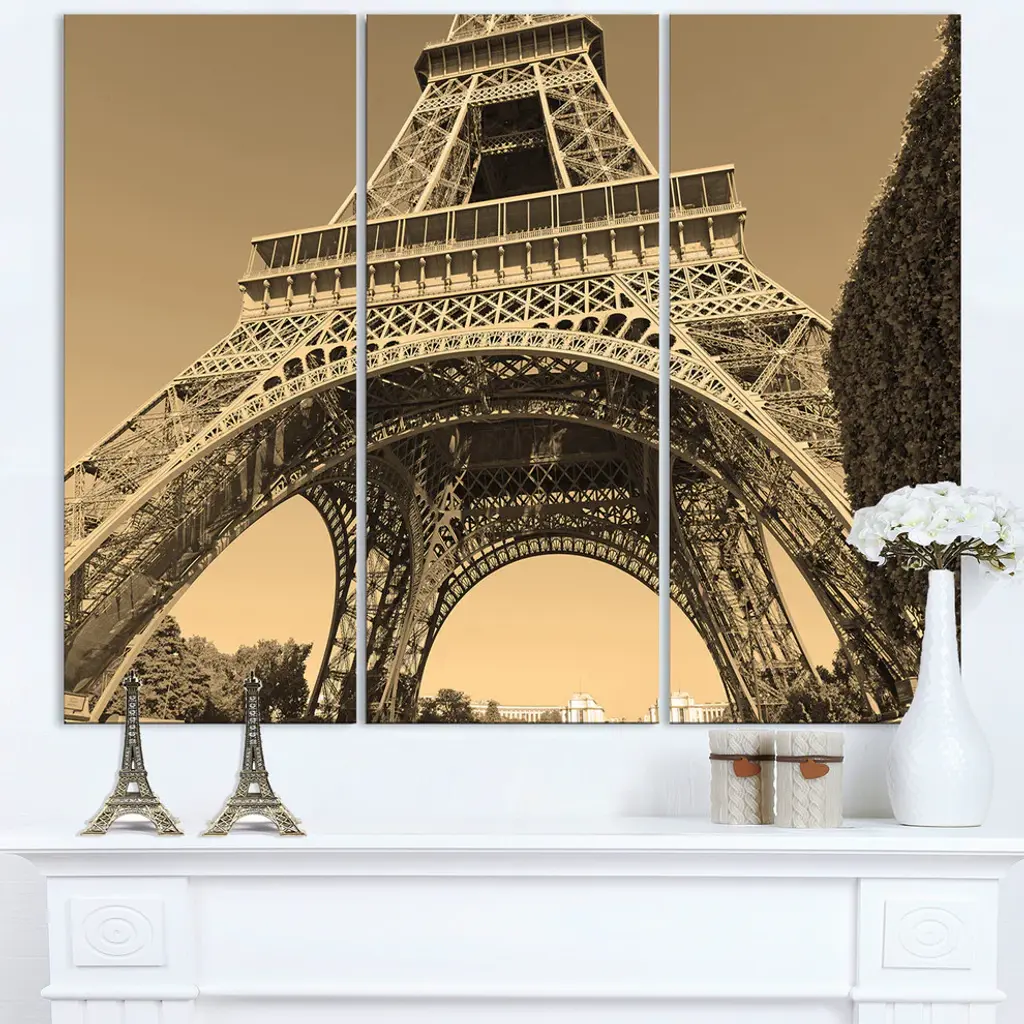 "Iconic Paris Eiffel Tower View From Ground" Metal Wall Art, 3 Panels, 36"x28"