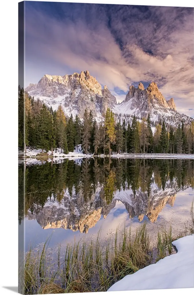 The Icy Winter Mountain Alps canvas art print is sure to make an impression on anyone who sees it. This artwork is gallery wrapped around a 1-inch solid wood frame and arrives carefully packaged and entirely ready to hang on the wall. Design Art only uses the highest resolution and pigments to ensure a crisp colorful print that is never faded or pixelated. This artwork is sure to be a conversation starter in any home or office.