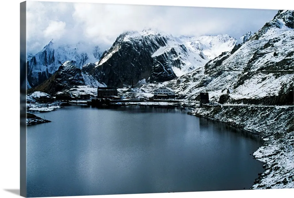 "Icy Winter Mountain Alps" Landscape Canvas Photo Print, 20"x12"