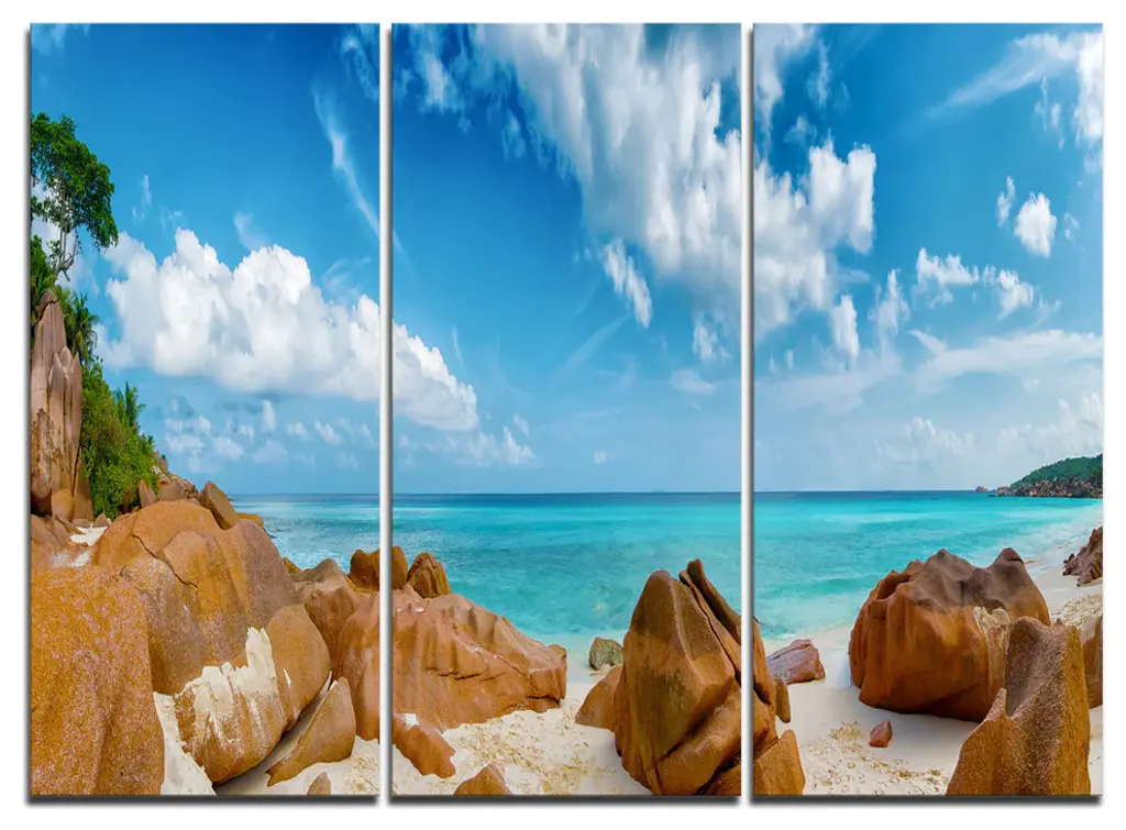 "Ideal Beach In Seychelles" Photo Metal Wall Art, 3 Panels, 36"x28"