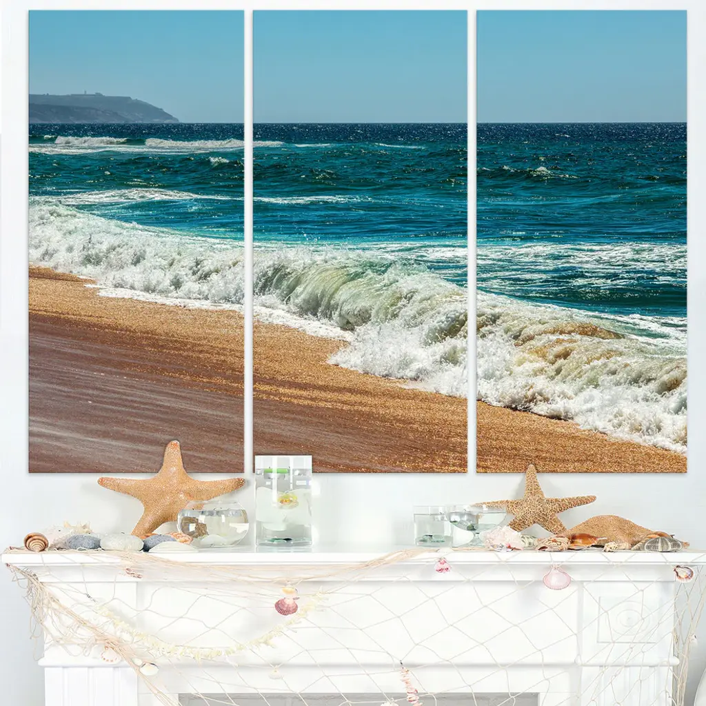 "Ideal Blue Atlantic Beach In Summertime" Metal Wall Art, 3 Panels, 36"x28"