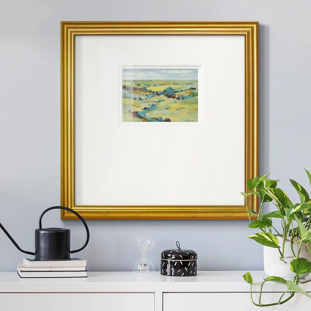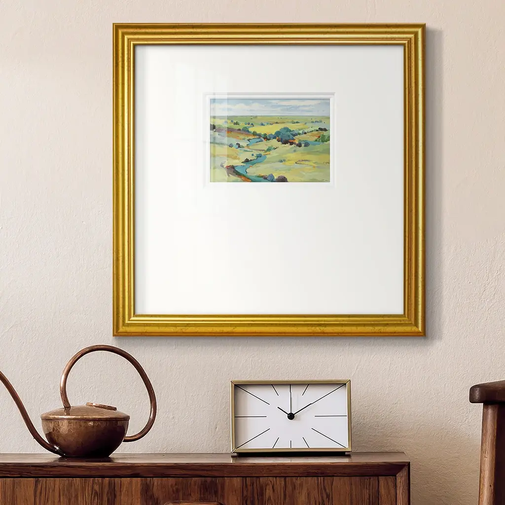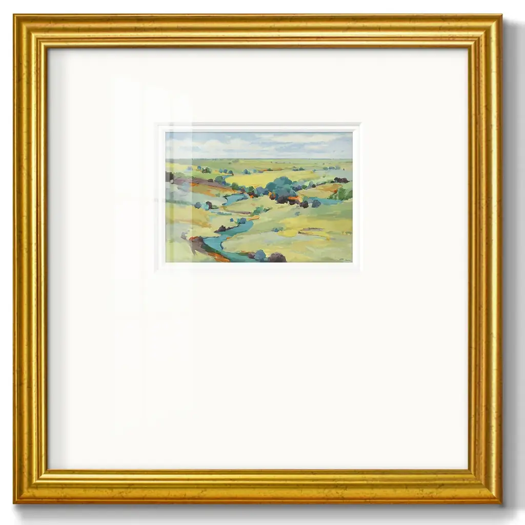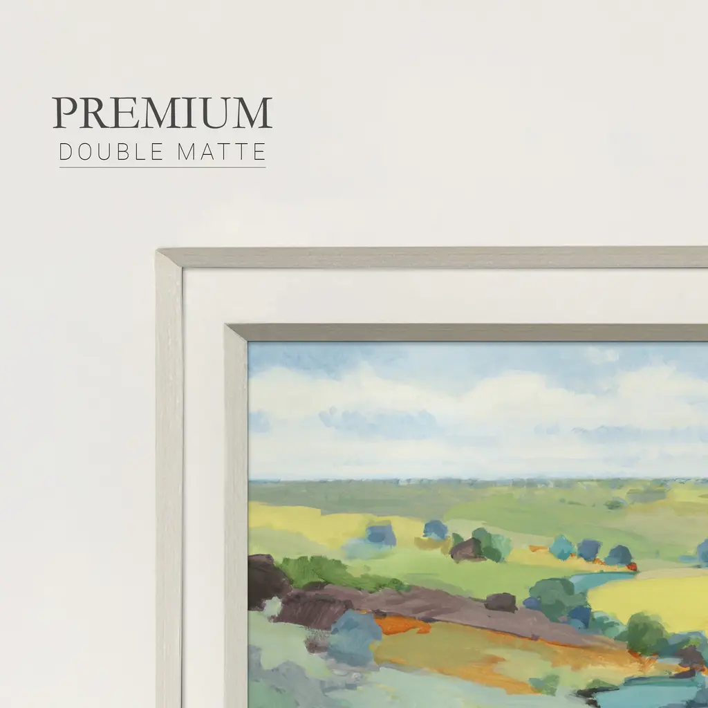 Idyll SweepPremium Framed Print A framed cold pressed paper print featuring superior double matting and quality frame. 2 SIZES AVAILABLE 16''X16''' - Overall Size 20''X20''' - Overall Size Each piece is made to order. Each piece comes with hanging hardware. Made in the USA Ready to Hang Giclee Paper Print Plexiglass Beveled Matt Board Double Matte Board