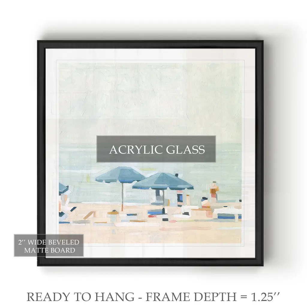 If It's the Beaches I -Black Framed Print A premium Black Framed giclee print Featuring a beveled a matt , acrylic glass, and a high quality giclee print 5 SIZES AVAILABLE 34''x34''- Overall Size 30''x30'' - Overall Size 26''x26''' - Overall Size 22''x22''' - Overall Size 18''x18''' - Overall Size Each piece is made to order. Built to Last Each piece comes ready to hang Fade and Water resistant Made domestically