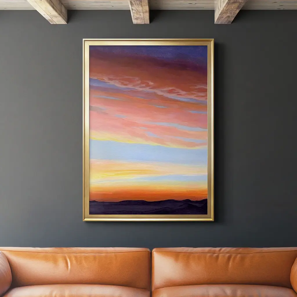 Ignited Dusk II Premium Framed Print - Ready to Hang A Premium Framed Print created to last. Framed in distressed wood and available in an array of sizes and colors Featuring a beveled a solid wood stretcher bar, each piece comes ready to hand 4 SIZES AVAILABLE 30.5''X42.5'' - Overall Size 26.5'X36.5'' - Overall Size 22.5''x30.5'' - Overall Size 18.5''x24.5'' - Overall Size Each piece is made to order. Each piece comes with hanging hardware. Made in the USA Ready to Hang