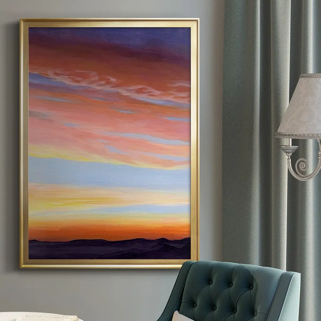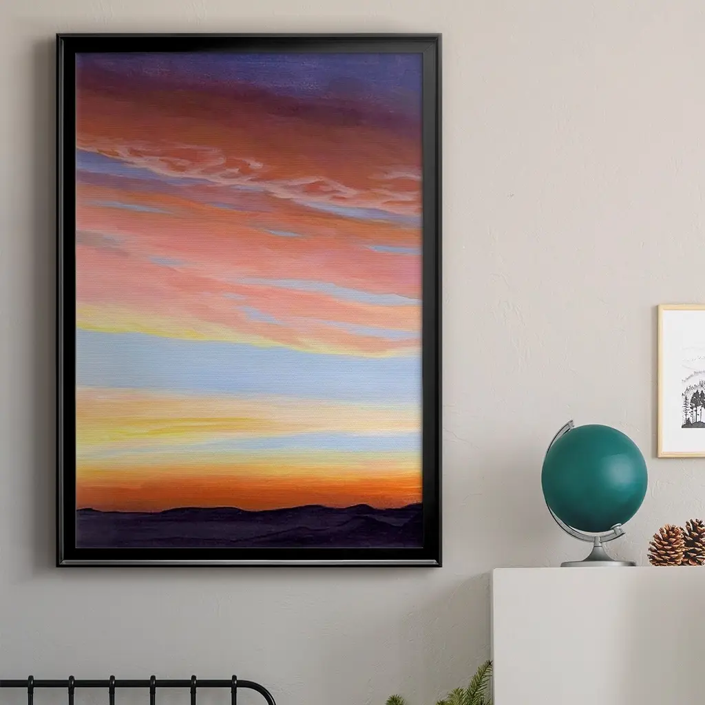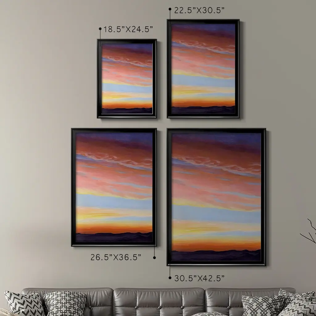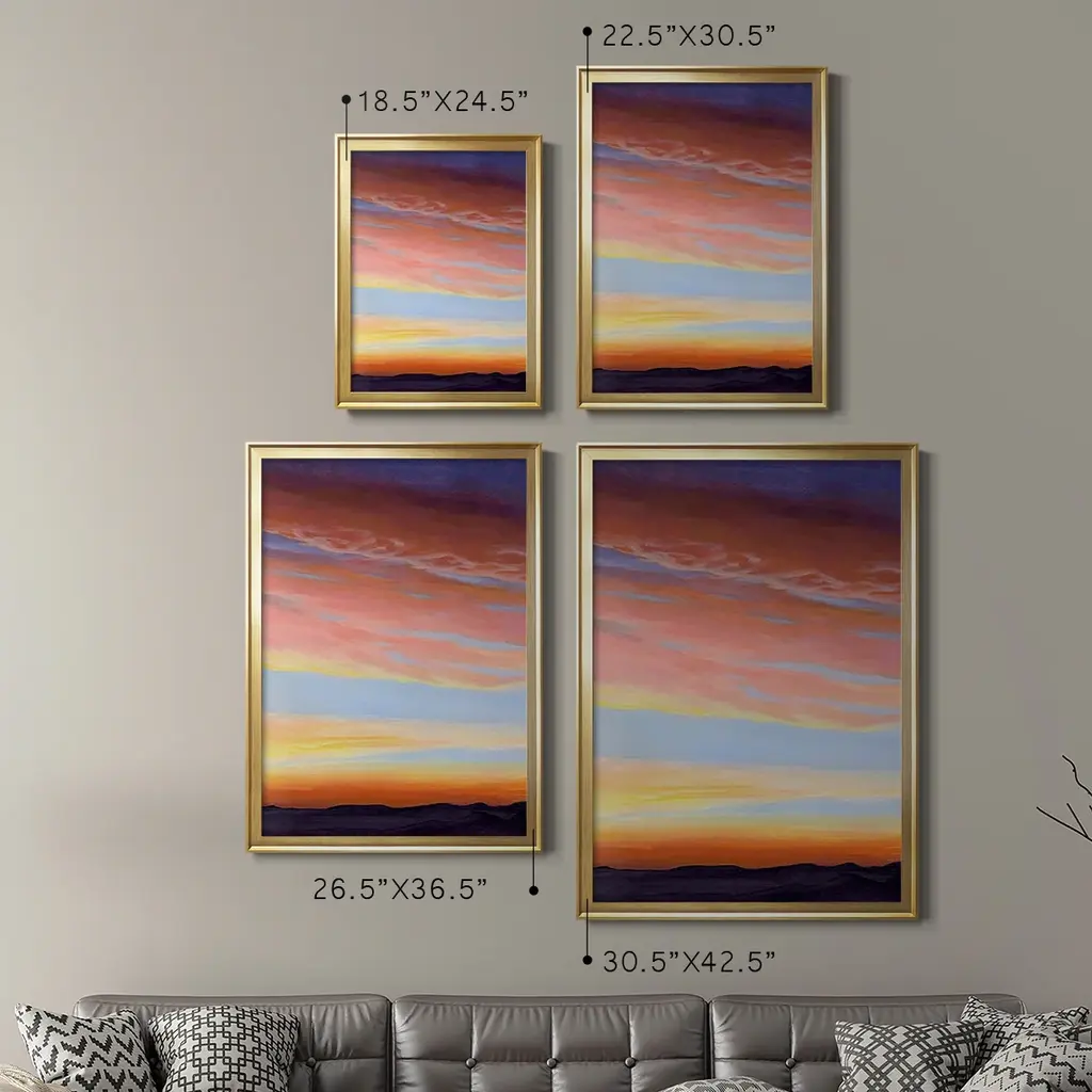 Ignited Dusk II Premium Framed Print - Ready to Hang A Premium Framed Print created to last. Framed in distressed wood and available in an array of sizes and colors Featuring a beveled a solid wood stretcher bar, each piece comes ready to hand 4 SIZES AVAILABLE 30.5''X42.5'' - Overall Size 26.5'X36.5'' - Overall Size 22.5''x30.5'' - Overall Size 18.5''x24.5'' - Overall Size Each piece is made to order. Each piece comes with hanging hardware. Made in the USA Ready to Hang