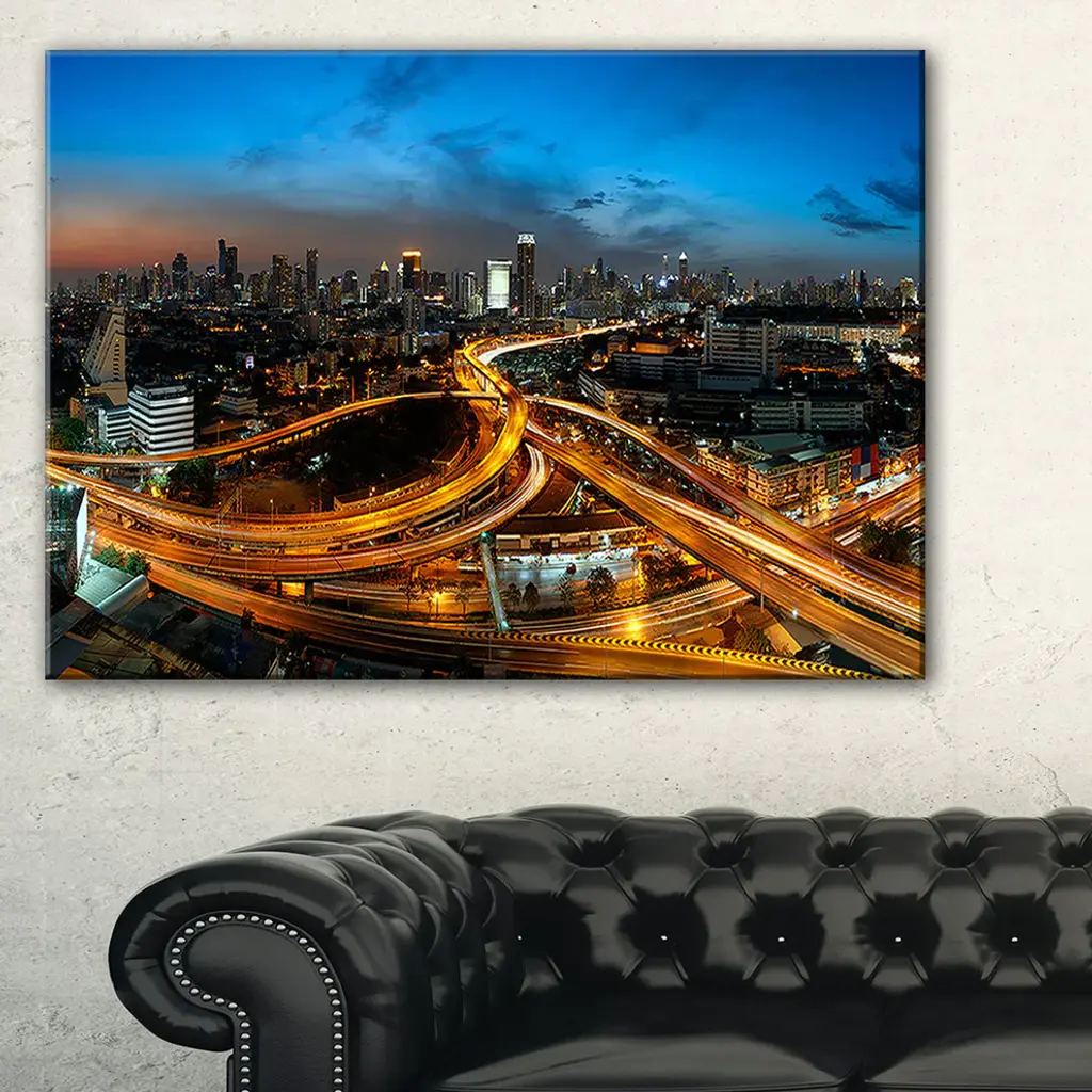 The Illuminated Highway in Bangkok canvas art print is sure to make an impression on anyone who sees it. This artwork is gallery wrapped around a 1-inch solid wood frame and arrives carefully packaged and entirely ready to hang on the wall. Design Art only uses the highest resolution and pigments to ensure a crisp colorful print that is never faded or pixelated. This artwork is sure to be a conversation starter in any home or office.