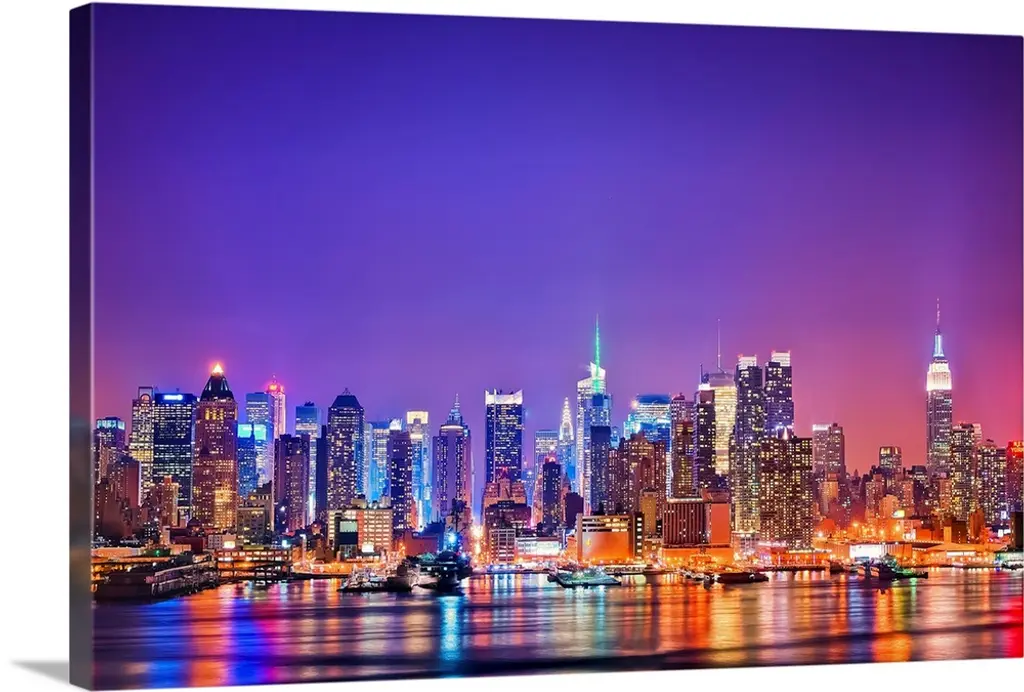 The Illuminated NYC Downtown Buildings canvas art print is sure to make an impression on anyone who sees it. This artwork is gallery wrapped around a 1-inch solid wood frame and arrives carefully packaged and entirely ready to hang on the wall. Design Art only uses the highest resolution and pigments to ensure a crisp colorful print that is never faded or pixelated. This artwork is sure to be a conversation starter in any home or office.