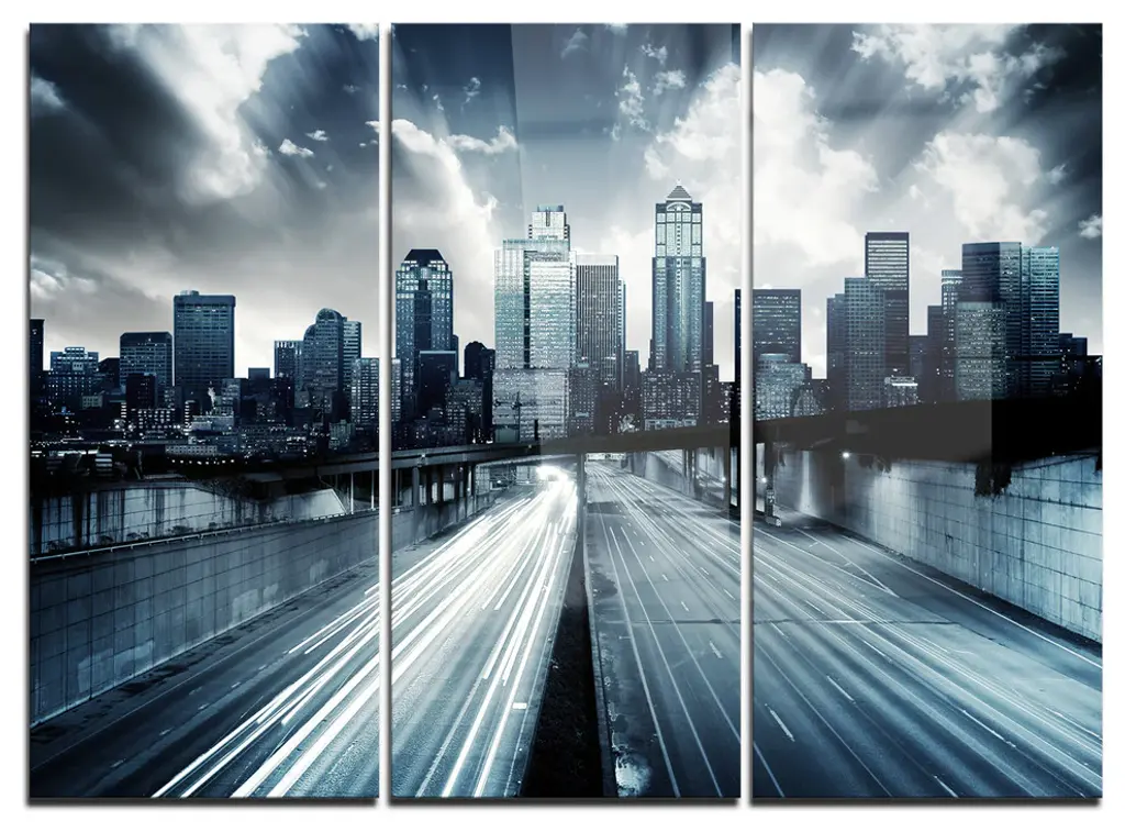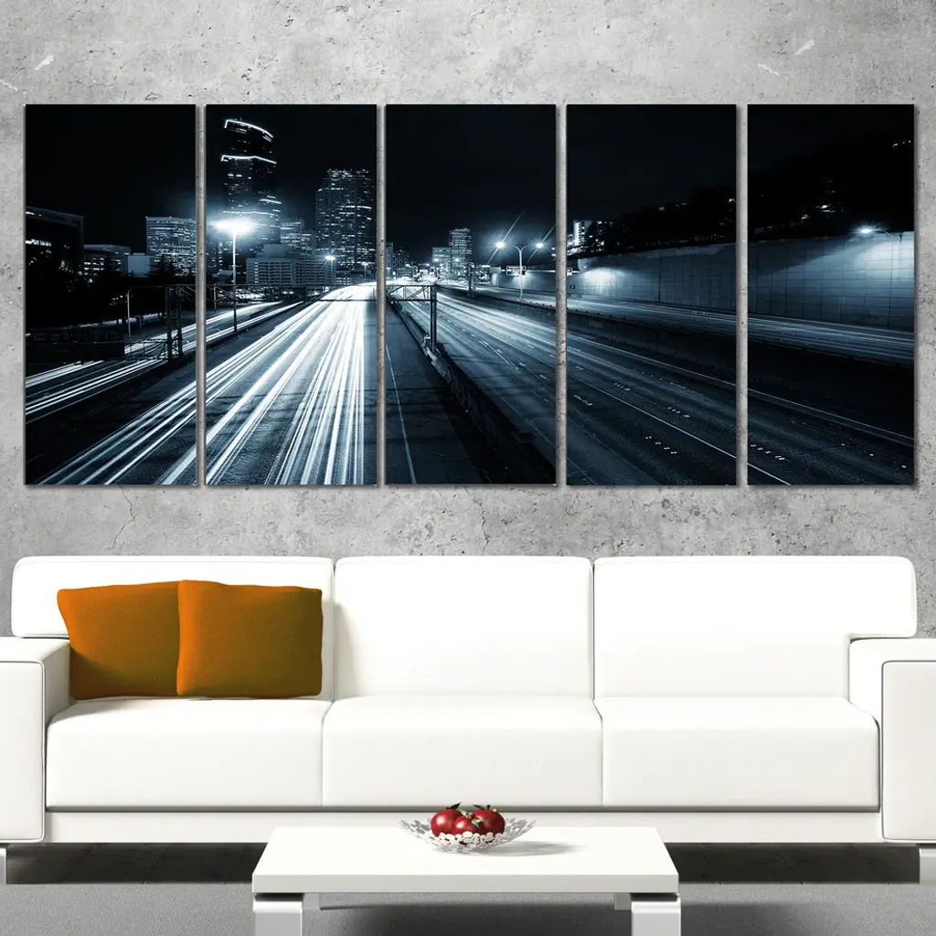 "Illuminated Traffic Trail In Downtown Seattle" Art, 60"x28", 5-Panels