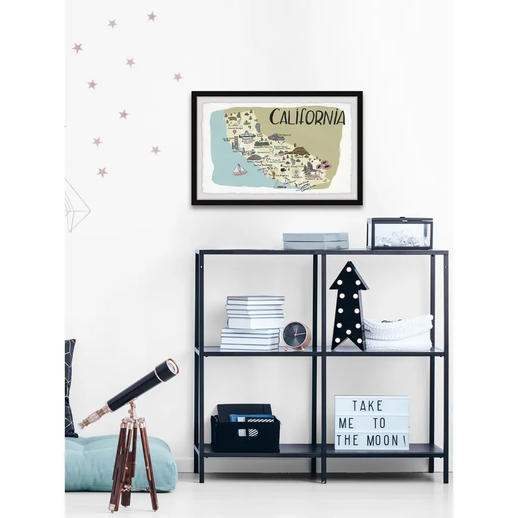 'Illustrated Map Of California' Framed Painting Print - 24 X 16