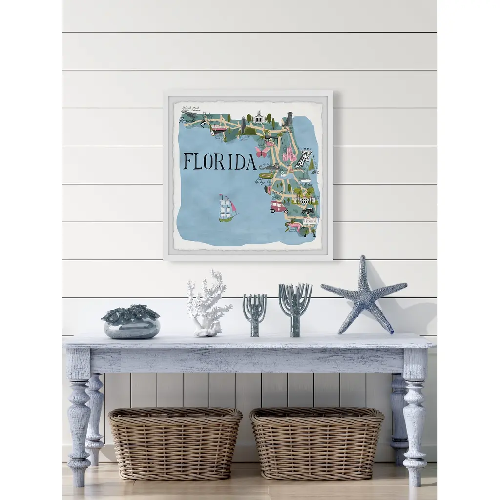 'Illustrated Map Of Florida' Framed Painting Print - 18 X 18