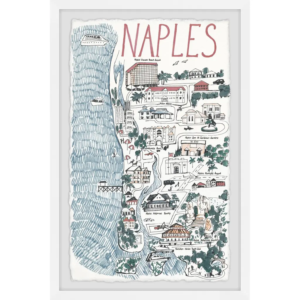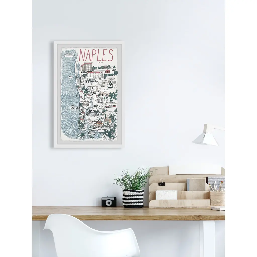 'Illustrated Map Of Naples' Framed Painting Print - 20 X 30