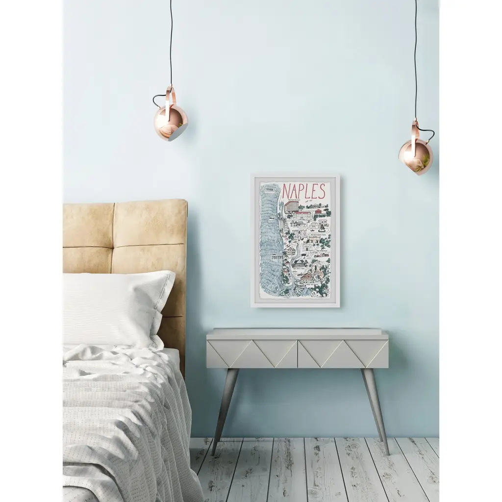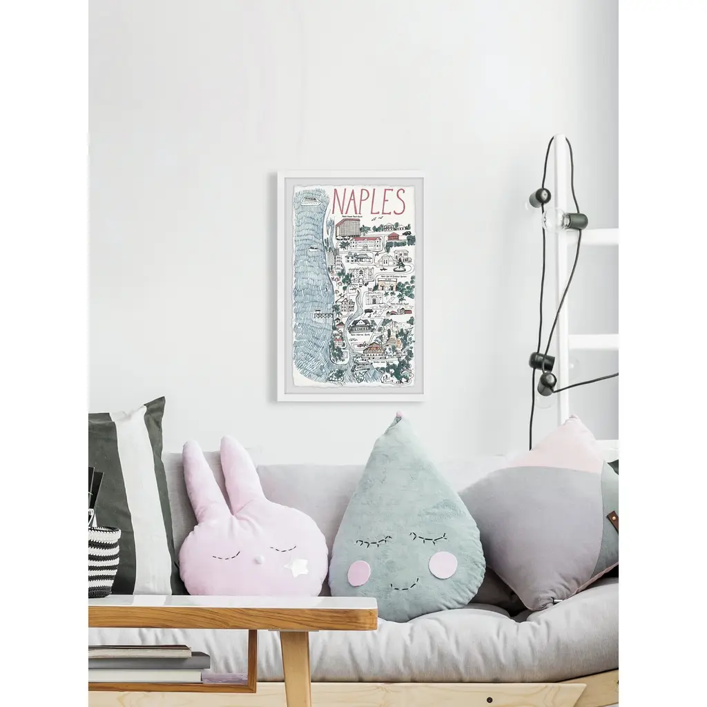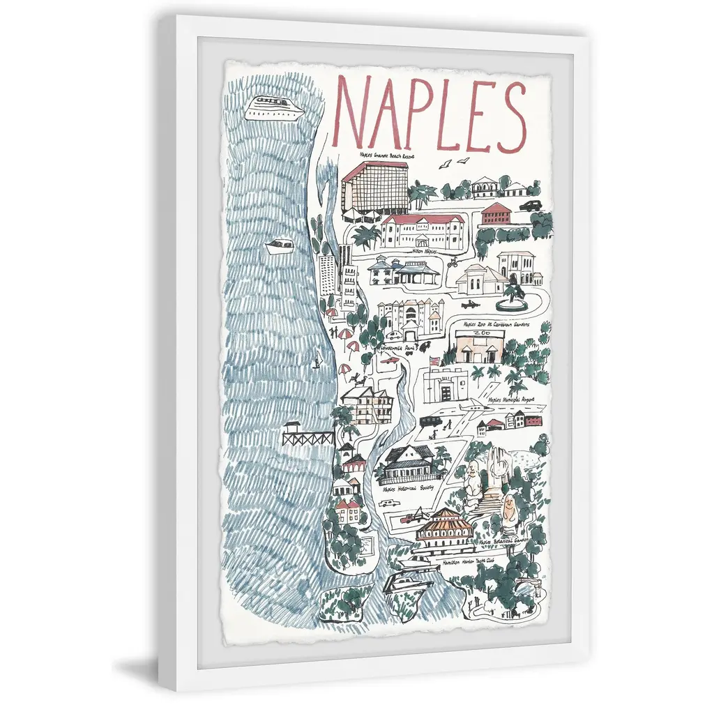 'Illustrated Map Of Naples' Framed Painting Print - 24 X 36