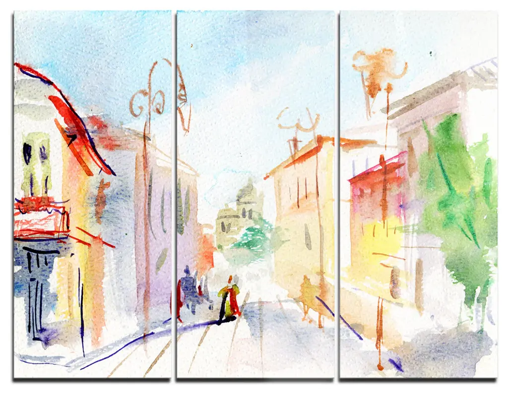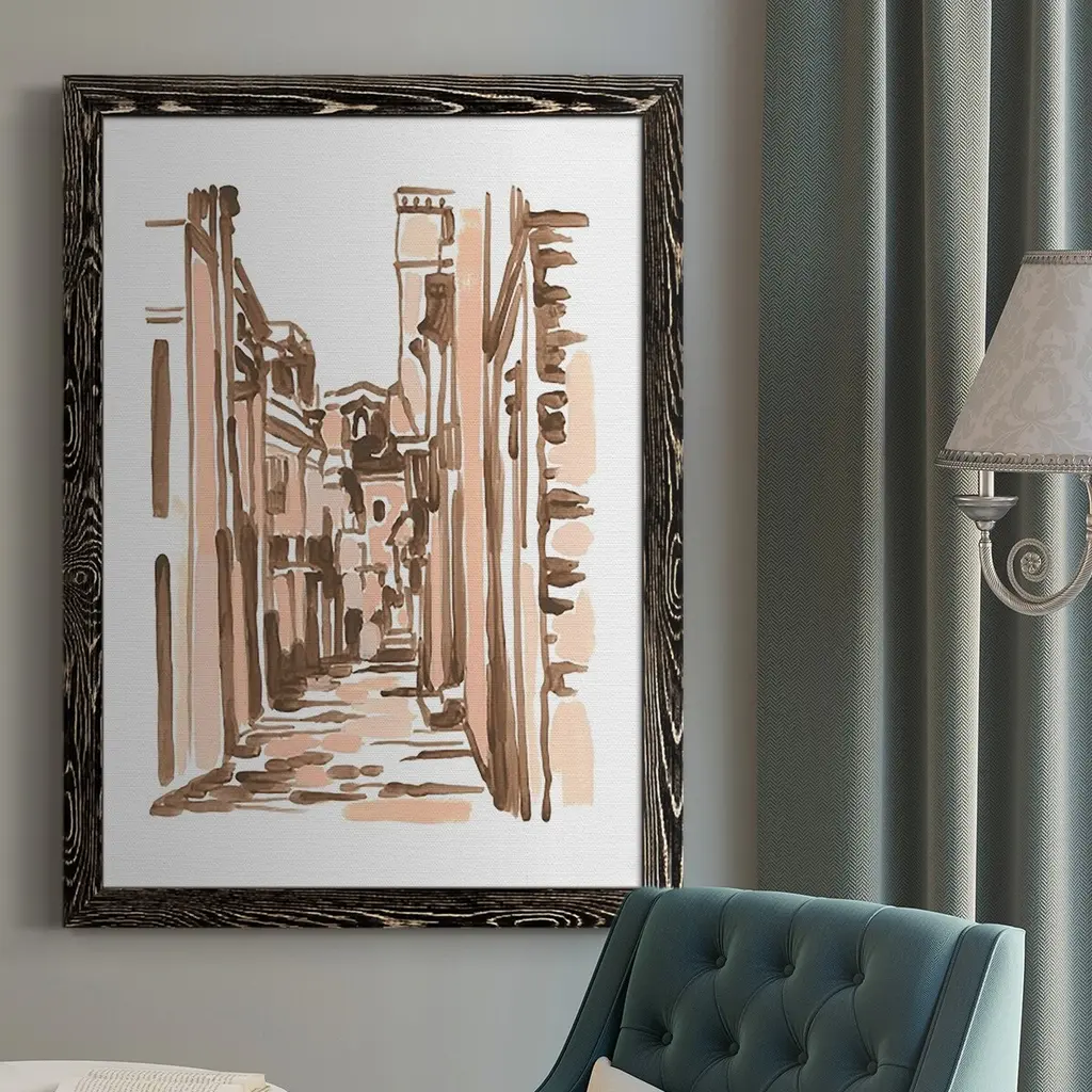 "Illustrated Parisian Street" Canvas Print, 40"x20"