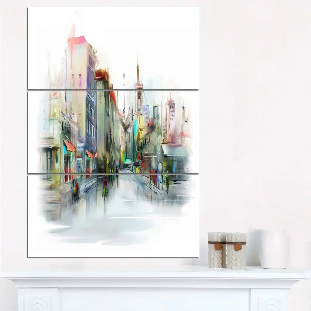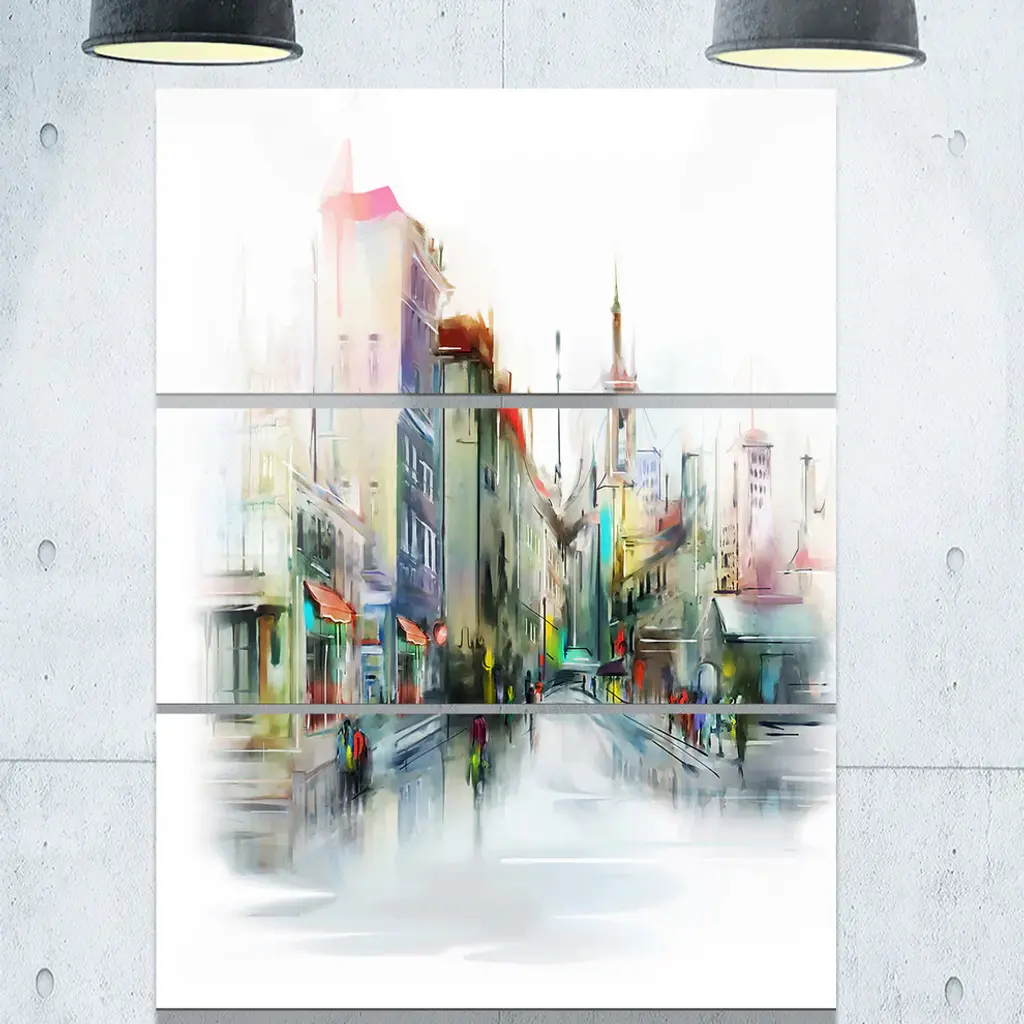 Bring contemporary abstraction to your home with this large 28W x 36H Metal Wall Art. This Illustration of City Street Metal Artwork makes it the focal point of any room or office. - White gloss coating ensures colors are extra vibrant with light reflection.- Aluminum grade sheet metal with 1 inch mounting frame on the back giving the illusion that the artwork is floating on the wall..- Mounting brackets are included along with instructions.- High quality digital images are created directly into a glossy aluminum panel producing a stunning and captivating print into the glossy finish of the metal.- Water, fire and scratch resistant HD aluminum panels.- Looks better than any photo paper and guaranteed to last at least 20 years- Easy to clean with a microfiber cloth. Colors are far superior to regular canvas art. - Easy to hang