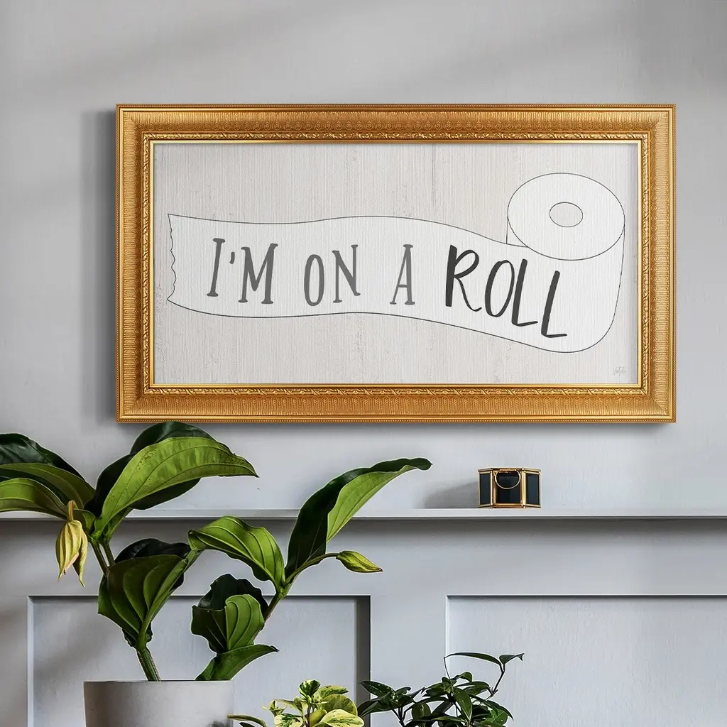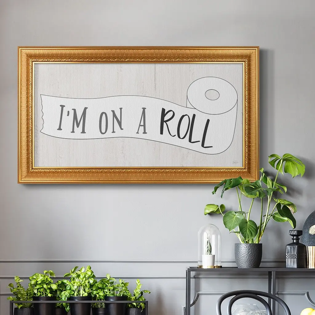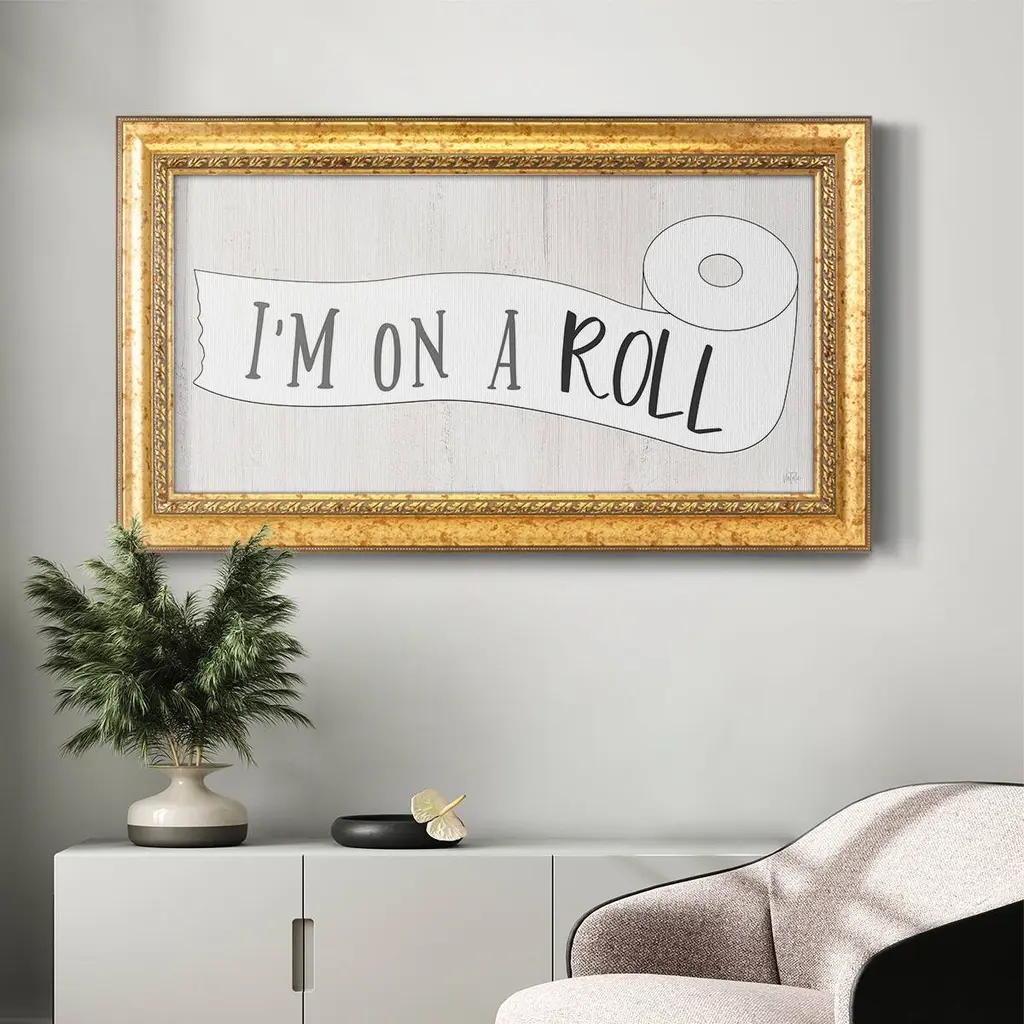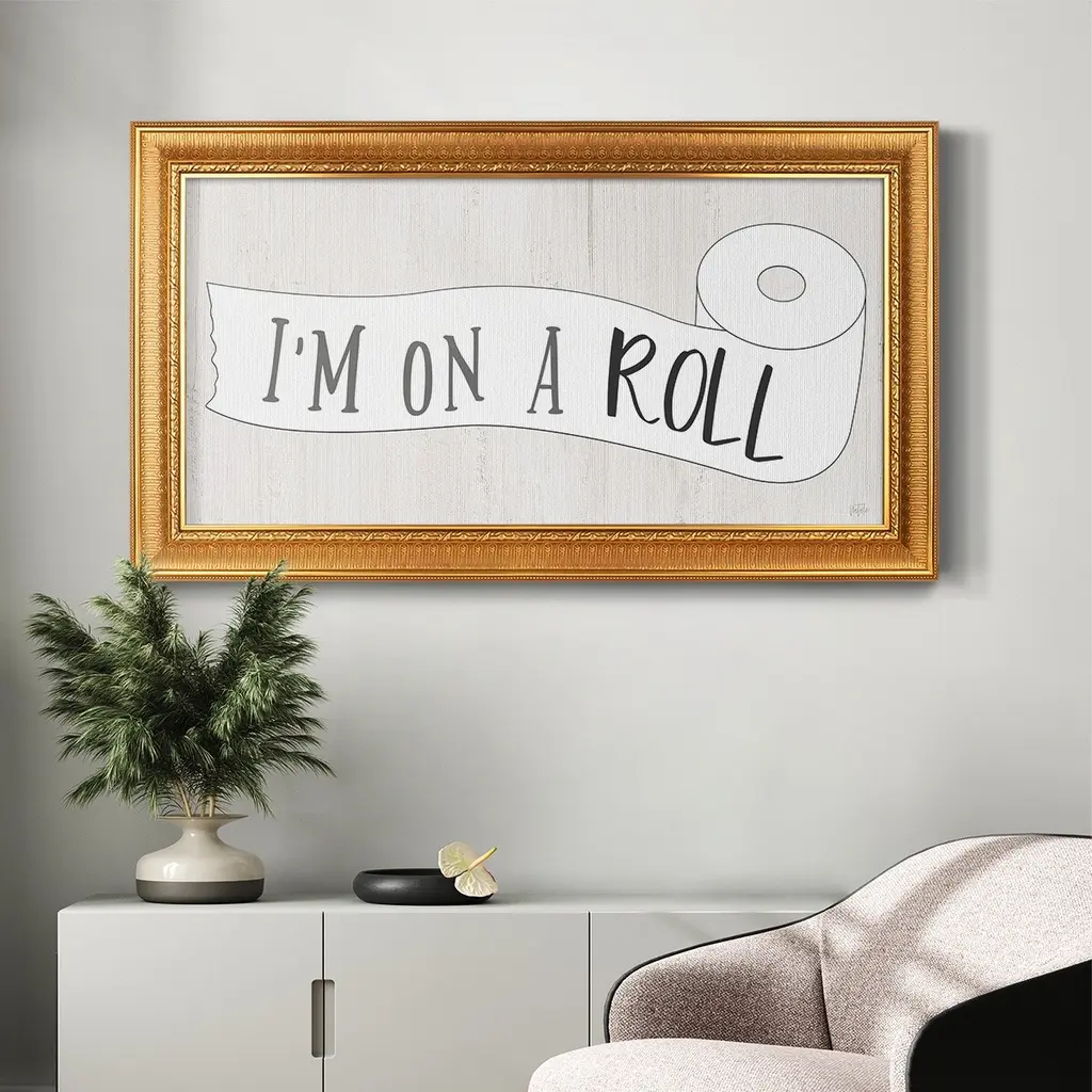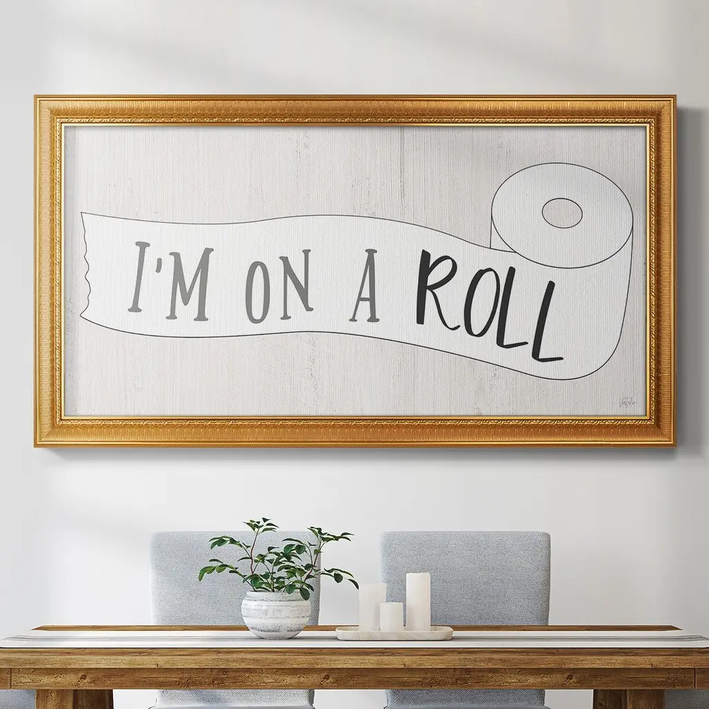 I'm On A Roll Premium Framed Canvas- Ready To Hang - 18x34 - Gold