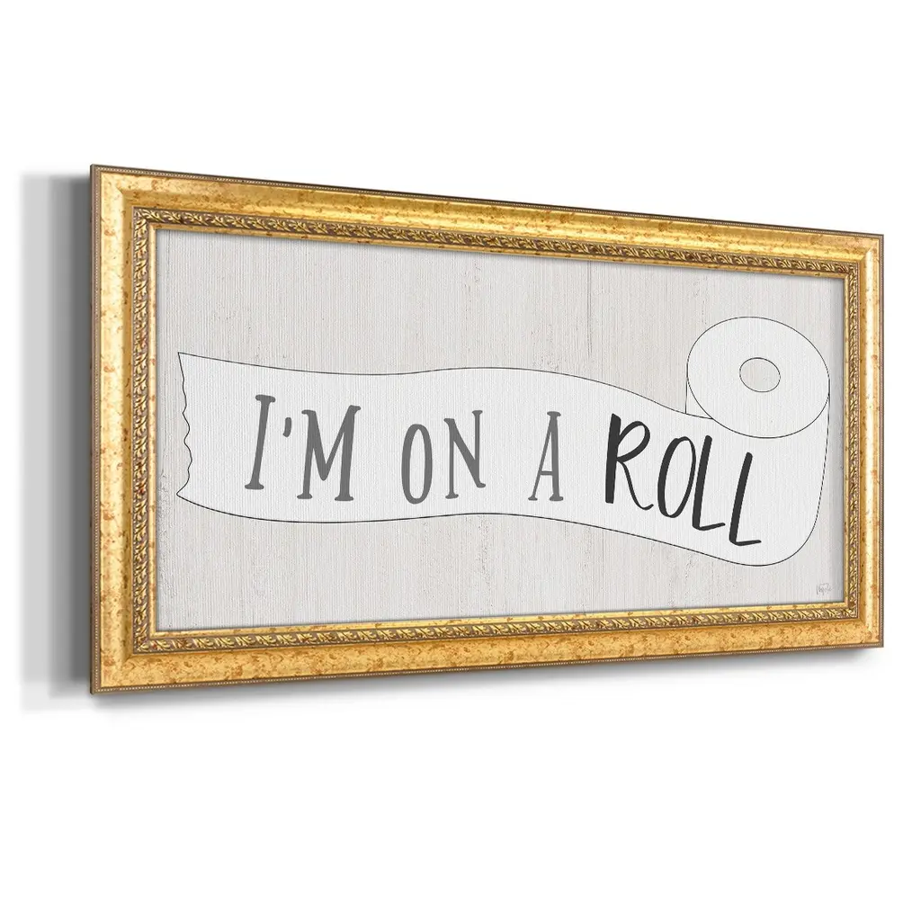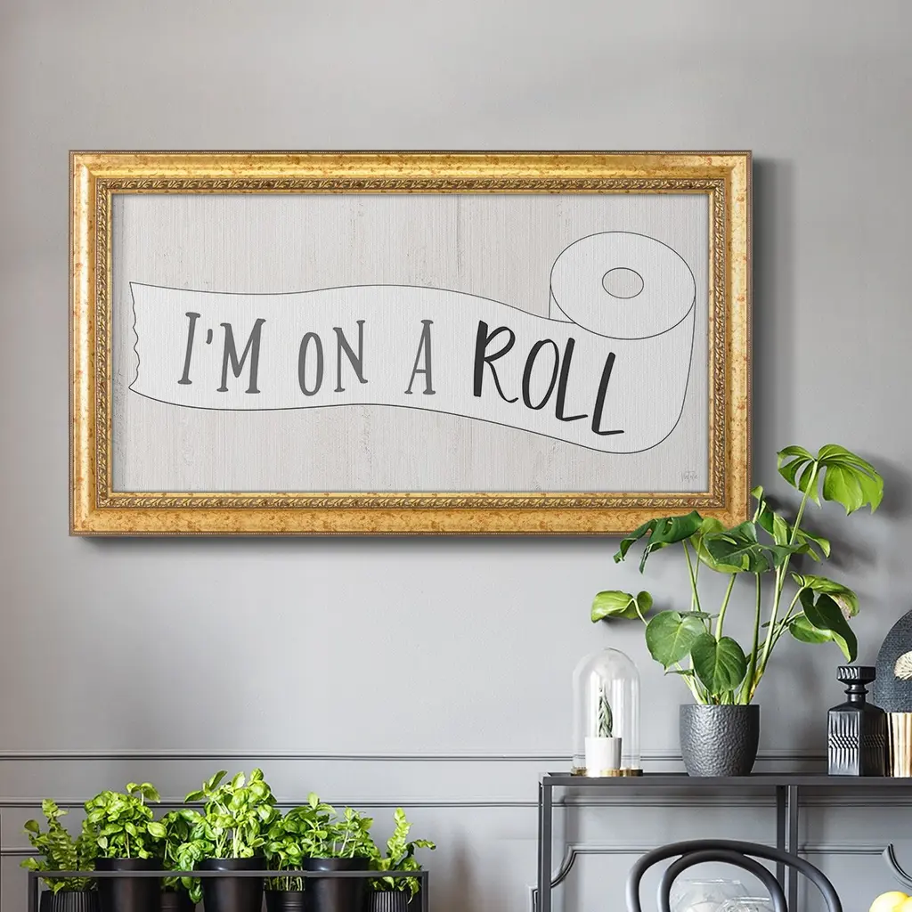 I'm On A Roll Premium Framed Canvas- Ready To Hang - 18x34 - Pewter