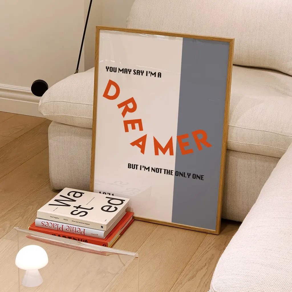 For the Beatles or Lennon obsessed. This playful print was inspired by the iconic song, Imagine. Using dreamy lyrics and striking graphics inspired by the 1960s this playful retro inspired piece can fit into any space. Printed on Mohawk Superfine eggshell paper which is certified by the Rainforest Alliance Program for FSC® Standards, with faded hues of blue, reds and blacks - the perfect side kick to your framed vinyl covers and retro sideboard.