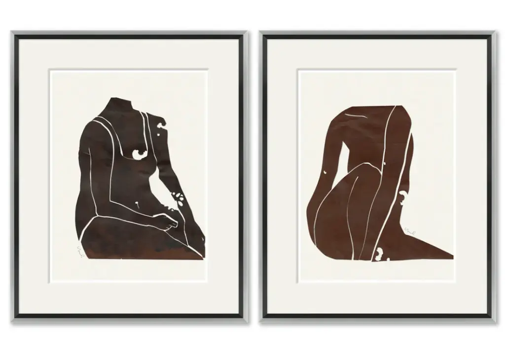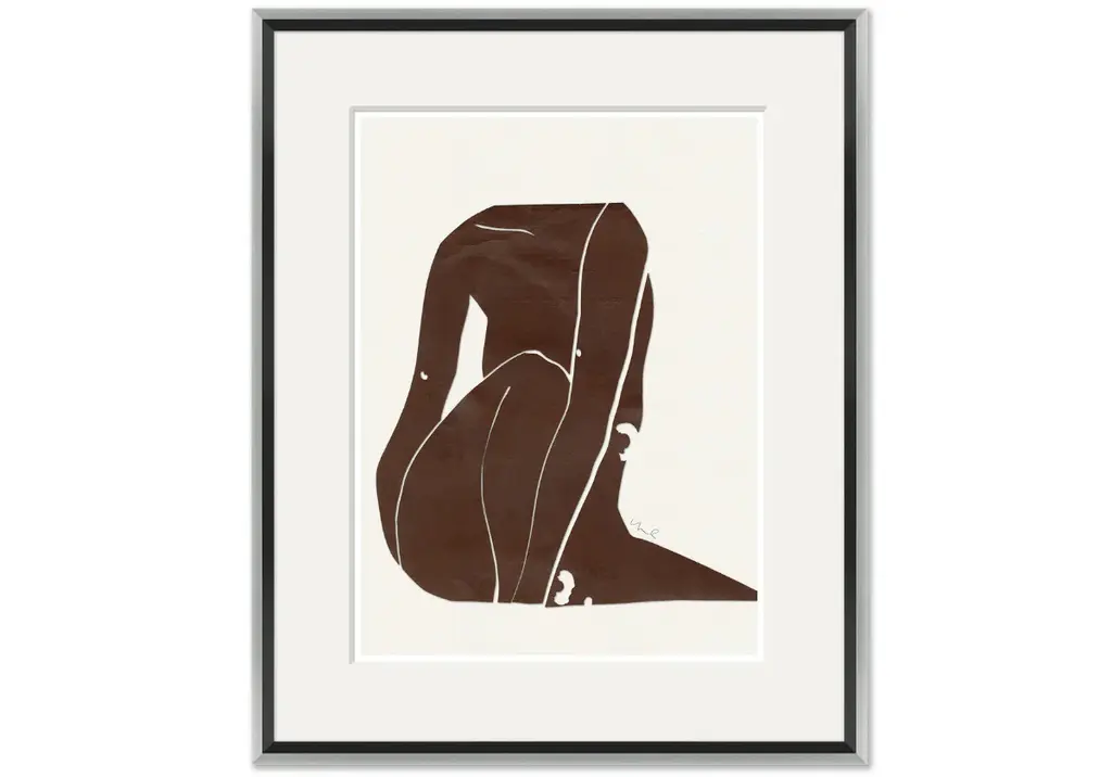 This framed artwork features a relaxed, poised silhouette in rich brown tones. Its interesting, captivating figure makes a powerful statement. Style as a focal point or pair both together for a cohesive design.