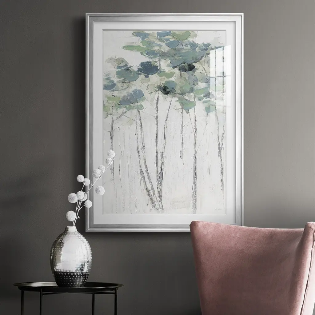 Impasto Tree Line I Premium Framed Print - Ready to Hang A Premium Framed Print created to last. Framed in distressed wood and available in an array of sizes and colors Featuring a beveled a solid wood stretcher bar, each piece comes ready to hand 4 SIZES AVAILABLE 30.5''X42.5'' - Overall Size 26.5'X36.5'' - Overall Size 22.5''x30.5'' - Overall Size 18.5''x24.5'' - Overall Size Each piece is made to order. Each piece comes with hanging hardware. Made in the USA Ready to Hang Giclee Paper Print Acrylic Glass Beveled Matt Board