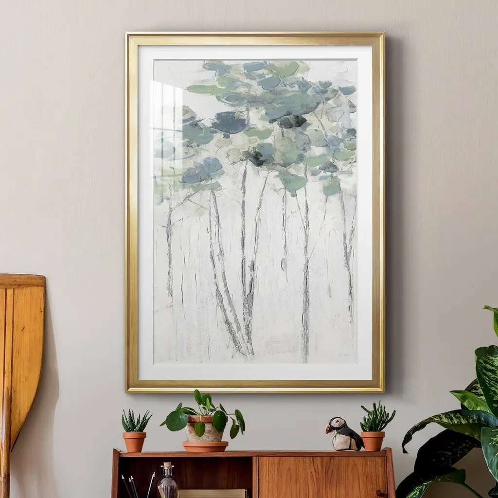 Impasto Tree Line I Premium Framed Print - Ready to Hang A Premium Framed Print created to last. Framed in distressed wood and available in an array of sizes and colors Featuring a beveled a solid wood stretcher bar, each piece comes ready to hand 4 SIZES AVAILABLE 30.5''X42.5'' - Overall Size 26.5'X36.5'' - Overall Size 22.5''x30.5'' - Overall Size 18.5''x24.5'' - Overall Size Each piece is made to order. Each piece comes with hanging hardware. Made in the USA Ready to Hang Giclee Paper Print Acrylic Glass Beveled Matt Board