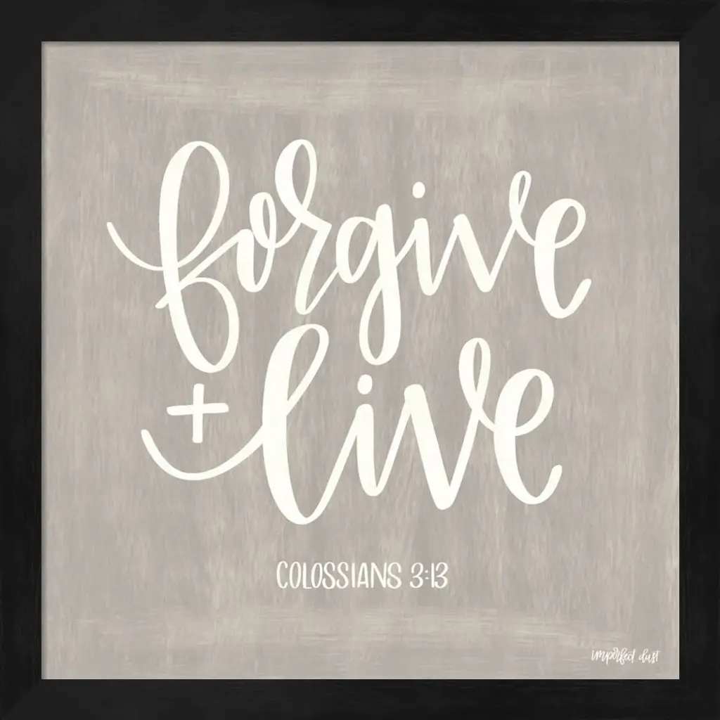 Forgive & Live by Imperfect Dust is a high quality piece of framed artwork. The finished size of this piece is 13.25" X 13.25". It has a Black Deep Box frame and is finished with high quality glass. 100% Satisfaction Guaranteed.