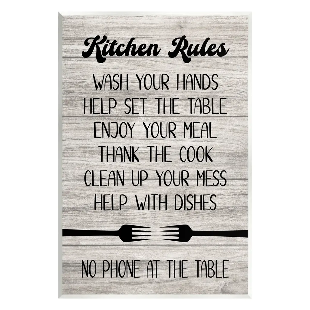 Kitchen Rules by Imperfect Dust is a high quality piece of canvas artwork. The finished size of this piece is 12" X 12", and it has a depth 1.5" with black painted sides. There is a UV protective coating over the entire image, and it is ready to hang on your wall with no hardware required. 100% Satisfaction Guaranteed.