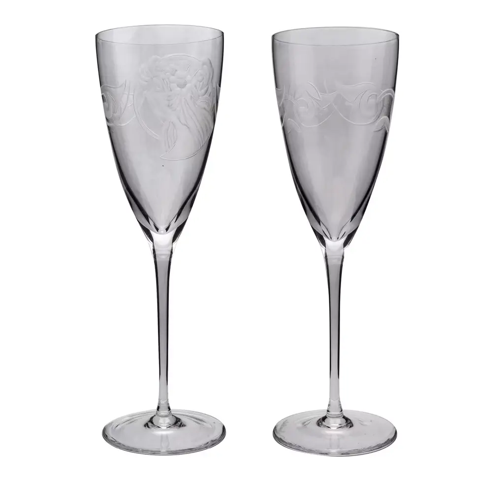 As you look at the Imperial Collection, you sense something extraordinary before you. This sophisticated pattern reveals the peerless talent of the engraver. This collection includes vastly time-consuming, hand-made designs with almost magical solutions, mixing flat cutting, sphere engraving and lifelike engraving techniques. Art aficionados applaud the superb craftsmanship and distinguished artistry found inherent in every piece of Varga Art Crystal. From the Varga design studios and forty person glassworks in Budapest, Hungary, famous husband and wife team Ildikó and Sándor Varga – a third generation glass master – create crystal artwork that graces palaces, embassies, museums and celebrity homes around the globe. Each piece of Varga is an original – skillfully and creatively crafted entirely by hand. Each hand-cut stem or intricately engraved crystal masterpiece is individually signed by hand and may require months to craft. Imagine an artist moving his canvas against a fixed brush to create his masterpiece: this is the essence of the rare art of copper and diamond-wheel engraving that is practiced today only by a handful of highly skilled craftsmen.