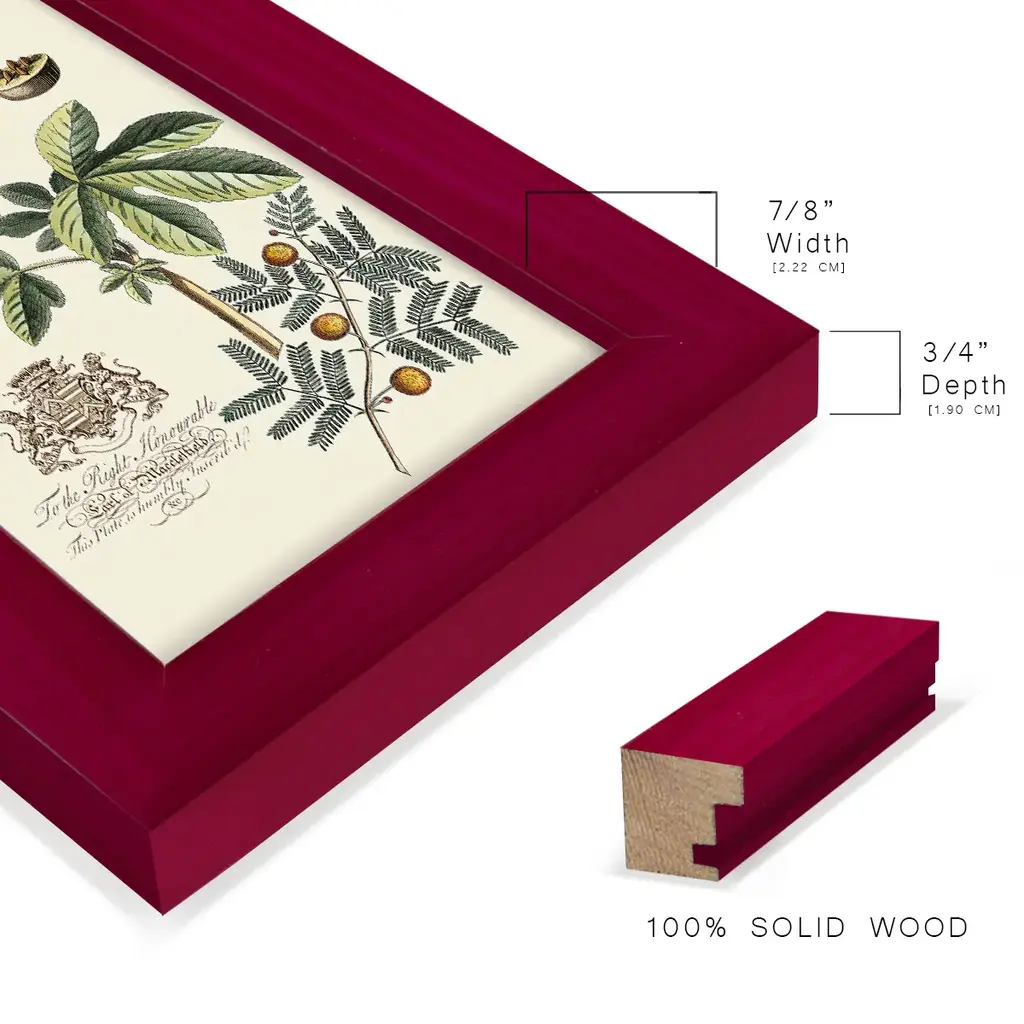 Imperial Foliage I -EZ SWITCH Framed Print w/glass-Cherry Red A delightful, framed print. Featuring a solid wood frame with real wood glass. This premium print is giclee quality. In addition, every frame features a removable back and table top stand. This allows you to change your art in the future or to just stand the art on a table for a new look. We are sure you'll enjoy our new series of EZ SWITCH Framed Art. Solid Wood Frame Real Glass Removable / Replaceable Art Built in Tabletop Stand Sizes range from 4x6 up to 12x15 - buy just one or pair them up as sets as you see fit.